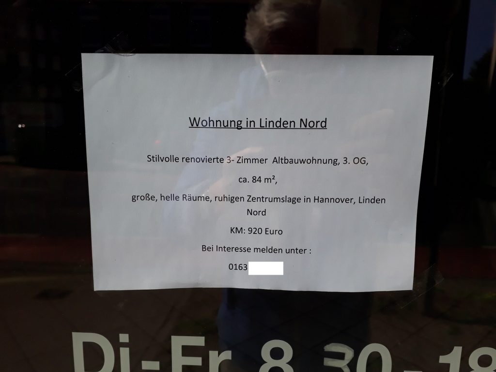 11 Euro Kaltmiete/qm. Bei mir umme Ecke. Das Verwunderliche ist nicht der Preis, sondern die Tatsache, dass es ein Angebot in Form eines Aushangs gibt. Der Regelfall ist das Gesuch, also die Nachfrage.