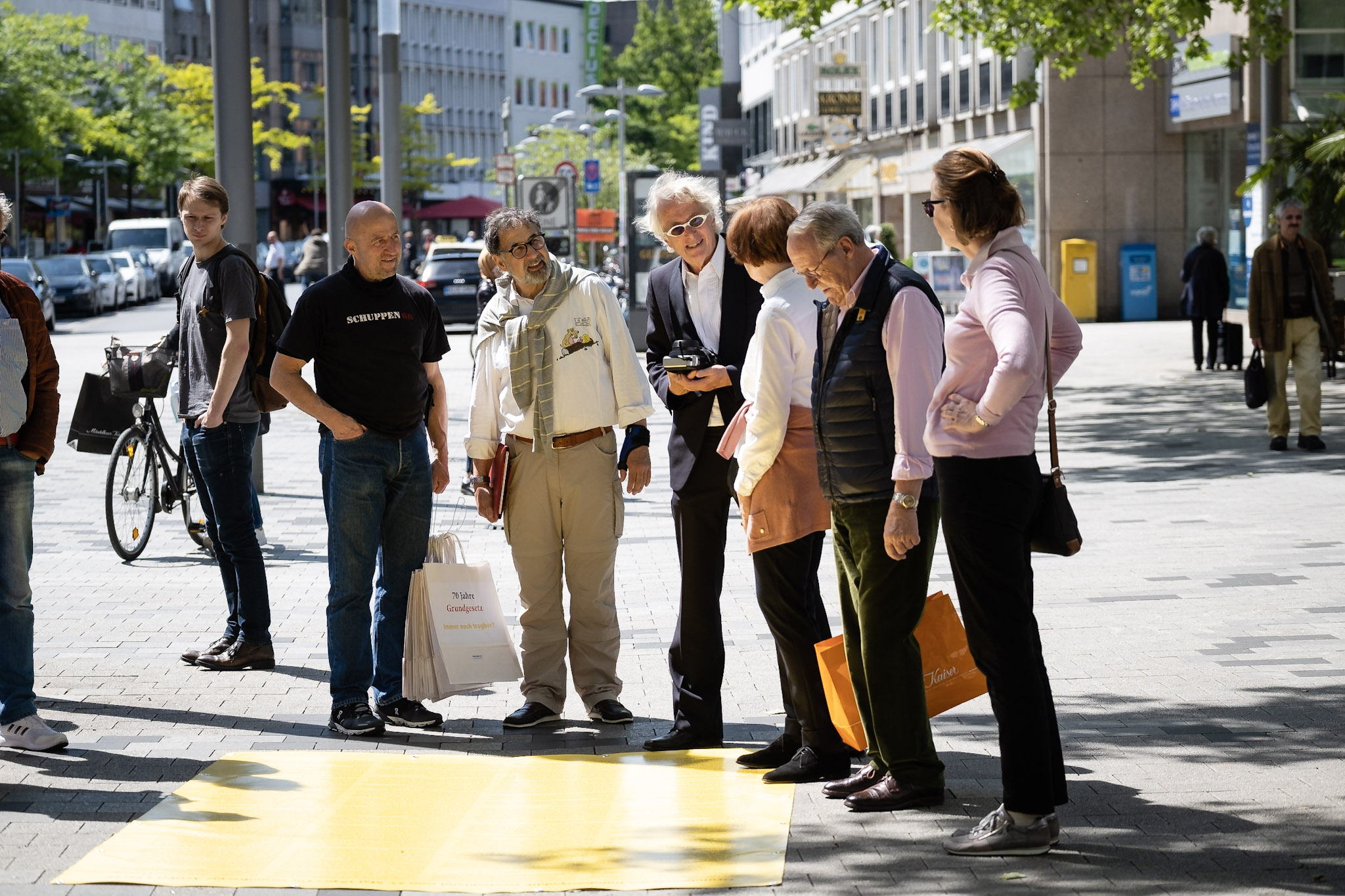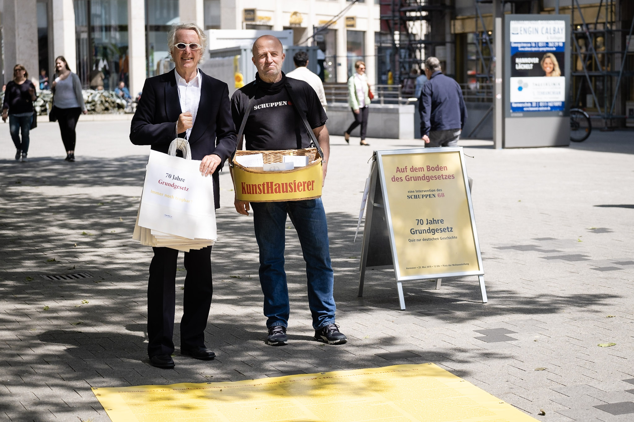 Am 23. Mai 2019 jährte sich zum 70. Mal der Tag, an dem das Grundgesetz der Bundesrepublik Deutschland verkündet wurde. Aus diesem Anlass veranstaltete das Künstlernetzwerk SCHUPPEN 68 in Hannover am Platz der Weltausstellung um 12 Uhr eine Intervention mit dem Titel: „Auf dem Boden des Grundgesetzes.“