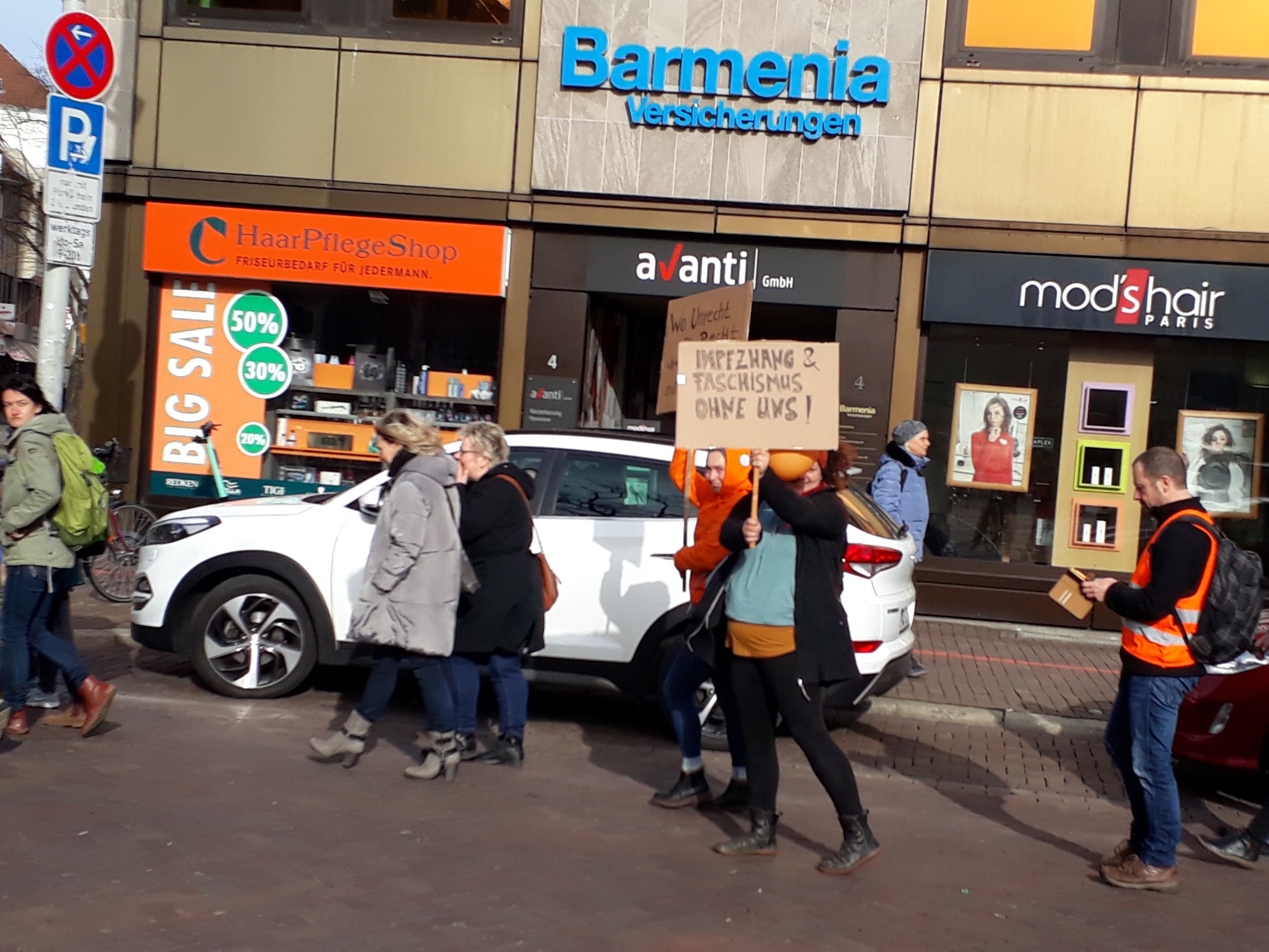 Meine Laune ging vollends in den Keller, als ich am gleichen Samstag in der City unverhofft mit einem Ausbruch von Irrationalität und Infamie konfrontiert wurde: Eine Demo von Gegner*innen der Impfpflicht