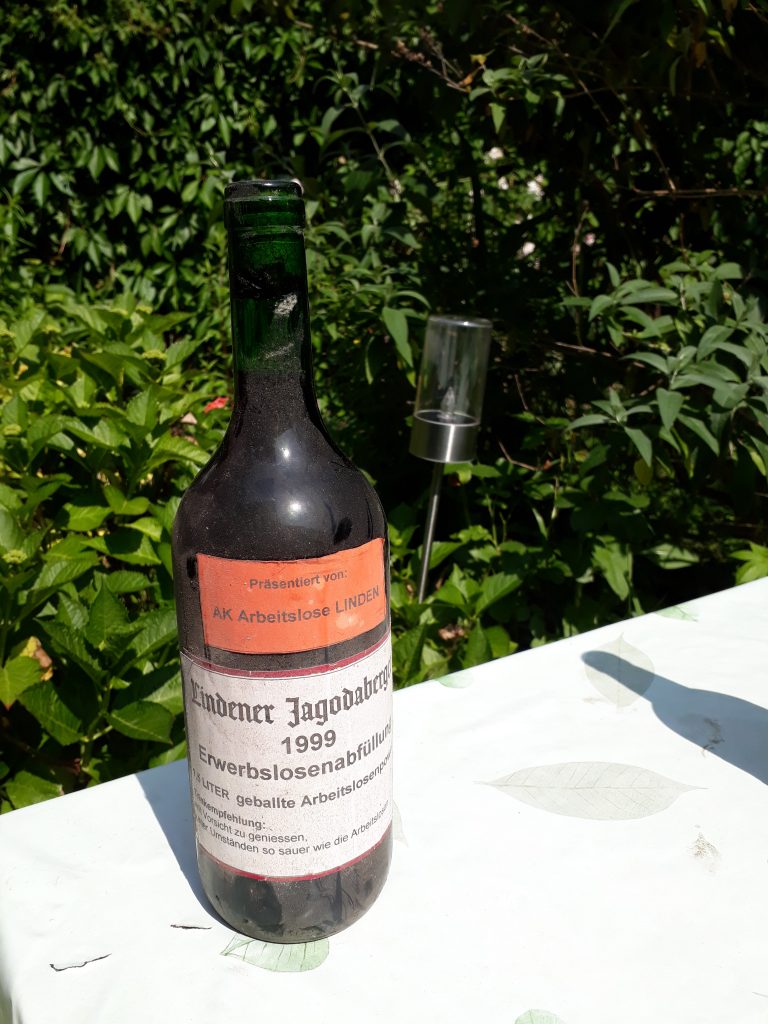Jagodaberger 1999. Jagoda hieß der damalige Chef der Bundesanstalt für Arbeit und die Flasche war eine Idee vom Arbeitskreis Arbeitslose Linden, damals eine der bundesweit führenden Erwerbsloseninitiativen. Politisch aktive Erwerbsloseninitiativen gibt es nach 15 Jahren Hartz IV kaum noch. Um die Jahrtausendwende gab es über 4 Millionen offizielle Arbeitslose, ca. 10 Prozent. Eine Konsequenz zur Bekämpfung dieser Krise war Hartz IV.