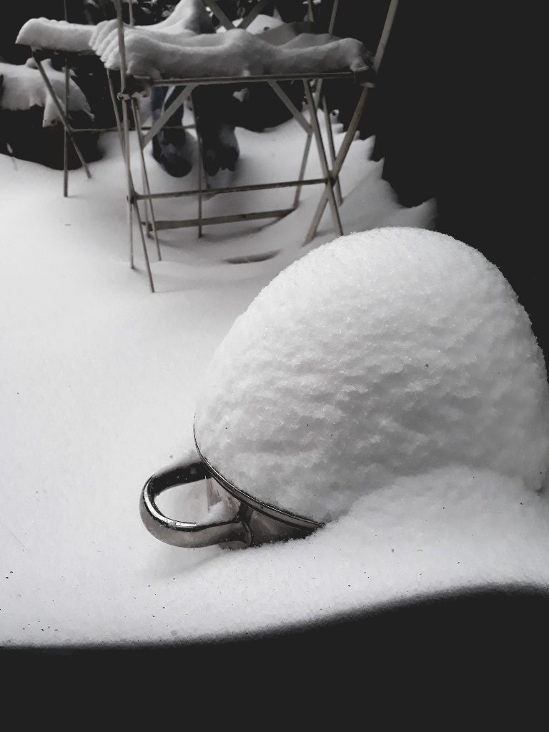 Hatte ich unlängst darüber gemährt, dass Winter in unseren Breitengraden unter anderem deshalb ätzend ist, weil er Schnee sofort in graubraun eklige Matschepampe verwandelt, hatten die Wettergöttinnen ruckzuck ein Einsehen und ließen nicht Frühling werden mit Blüten aller Orten, sondern einen Winter einbrechen wie seit Äonen nicht. Der wird wohl länger dauern, was pittoresk, siehe Suppe, aussieht und in Seuchenzeiten, wo sonst nix los ist, eine willkommene Abwechslung bietet, aber mir natürlich auch nicht recht ist. Ich möchte nicht, dass irgendwelche Göttinnen auf mich hören, weil sie eh alles in den falschen Hals kriegen, und meine täglichen Walks zwecks Stabilisierung der morschen Knochen sind nach zwei, drei Tagen auch kein Vergnügen mehr. Wenigstens ist für ein paar Momente die Seuche mal nicht Mittelpunkt und die Straße genannte Dreck- und Lärmschleuder vor meinem Fenster stellt sich selten unaufgeregt, leise und verzuckert dar. Dass an der Algarve gerade die Mandelblüte beginnt, darüber darf man allerdings nicht nachdenken.
