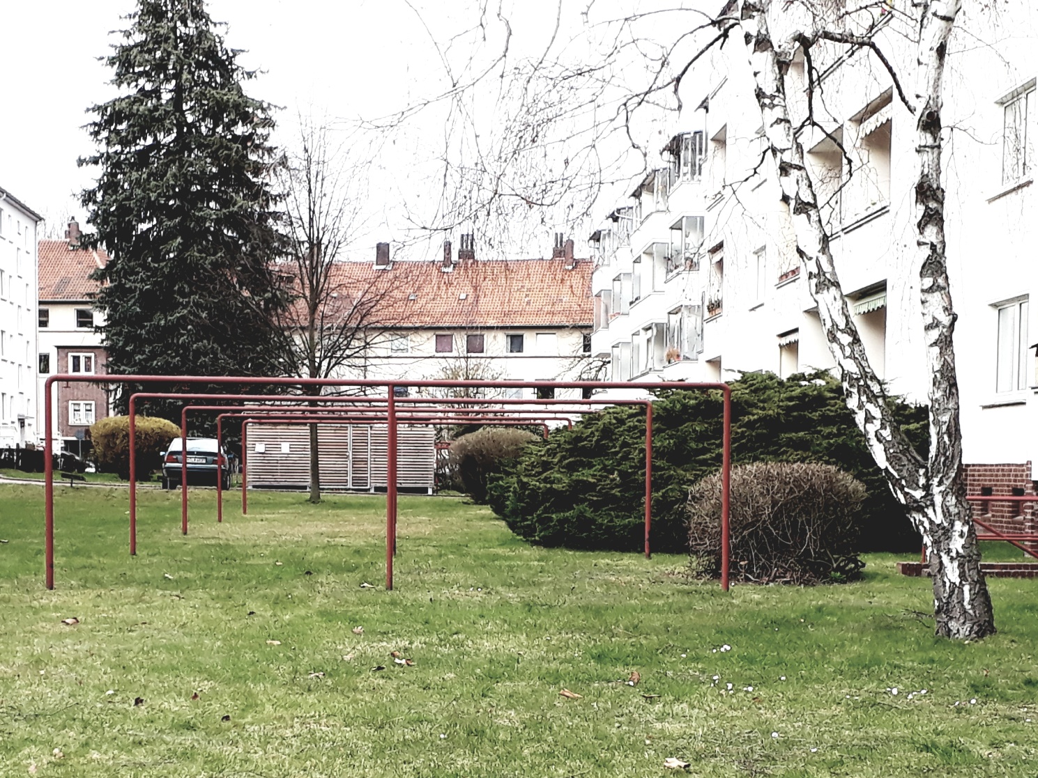Teppichstangen, überall Teppichstangen. Mittlerweile bin ich von „meiner“ kleinen Siedlung regelrecht besessen, gestern habe ich sogar einen Schlenker abseits meiner üblichen Walk-Runde da gemacht. Ich werde akribisch dokumentieren, ob meine Wahrnehmung stimmt, dass sich nie jemand in den Teppichstangen-Arealen aufhält. Und ansonsten mal die hiesigen Grünen auf die Idee von Anwohnerinnen-Gärten in Verbindung mit ökologischen Co2-Speicherinseln hetzen. In der Siedlung ist dann vielleicht der Teufel los, die Grünen haben hier keine Zeit mehr für Politik, was auch besser so ist, da kommt nur Mist bei denen raus (abgesehen von Berlin), und ich kann hinterher behaupten, das ist als Kunstintervention im Sinne einer sozialen Plastik mein Werk. Vielleicht muss ich mir dann ne andere Route aussuchen, aber wenn das Werk Bestandteil der nächsten Documenta wird, ist es mir die Sache wert. Die ganze Siedlung mit allen sozialen Konflikten in die Kasseler Aue gebaut, das toppt Beuys Eichen um Längen.