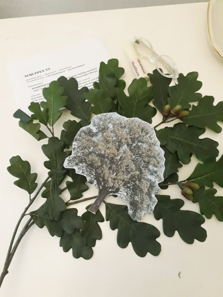 Nachhaltig an meiner Aktion: Eine Eiche hab ich privat, in meinen Garten gepflanzt. Richtig rum. Also verkehrt.