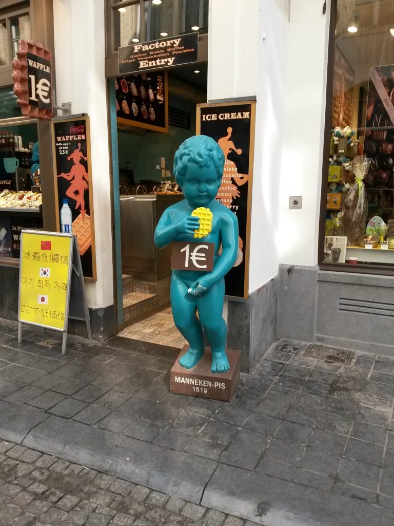 Brüsseler Impressionen, Kulturgüter Waffles und Männeken Pis. Fußball ist eher Unkultur, findet aber statt. Niemand bedauert das mehr als ich, was zumindest den Profifußball angeht. Diesem Bedauern habe ich hier mehrfach beredt Ausdruck gegeben. Nicht nur, weil es eine Notwendigkeit der Kulturkritik war angesichts der völlig verrotteten Umstände um dieses männerbündische Gruselphänomen, sondern auch aus Abarbeitung enttäuschter Liebe, war ich doch lange Jahre durchaus enthusiasmierter Anhänger des gepflegten Rasensports. Spätestens seit der WM 1990 war die Liebe erkaltet angesichts nationalen Fahnentaumels nach dem Titelgewinn in Verbindung mit brennenden Flüchtlingsheimen. Wer noch einen Funken Anstand im Leibe hatte, wusste: Kein Tropfen Herzblut mehr für die Wegbereiter des Gesindels.