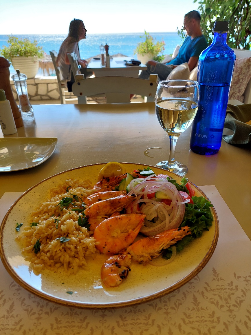 die fangfrischen Garnelen, die fehlen. Es ist das Licht eines ununterbrochen strahlenden Himmels, in allen seinen Schattierungen. Was da allein für Blau hervorgezaubert wird, wenn das Meer am Horizont den Himmel küsst, da könnt man glatt ins Schwärmen und ins Sehnen kommen.