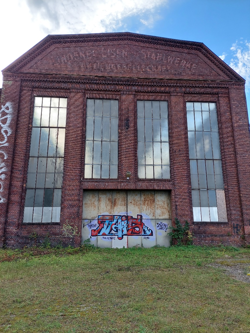 Schöner Backsteinbau auf einer der hiesigen Industriebrachen, die sich ein Privatinvestor gesichert hat. Auf der Fläche wird wahrscheinlich der übliche Büro/Gewerbemix entstehen, nichts, was irgendwie in die Zukunft weist. Als die Pläne bekannt wurden, meldeten sich sofort Architektur-Interessierte, die das Gebäude erhalten sehen wollten. Ihnen schwante Übles, da das das Gebäude nicht unter Denkmalschutz steht. Stand, muss man sagen, denn kaum hatte der Investor Wind von den Bestrebungen gekriegt, ließ er die Bagger anrücken und ruckzuck, war das Ding platt. Ich hab den Bau vermutlich als Letzter lebend gesehen und geknipst. Bei der derzeitigen Bodenknappheit und Spekulation hätte der Investor das Ding wahrscheinlich auch platt gemacht, wenn es unter Denkmalschutz gestanden hätte. Und sich hinterher entschuldigt. Ich kenn doch meinen Kapitalismus. Bei einem Profit ab 10 Prozent geht der über Leichen, ob aus Backstein oder Knochen. Also ruckzuck aufs Radl und geknipst.