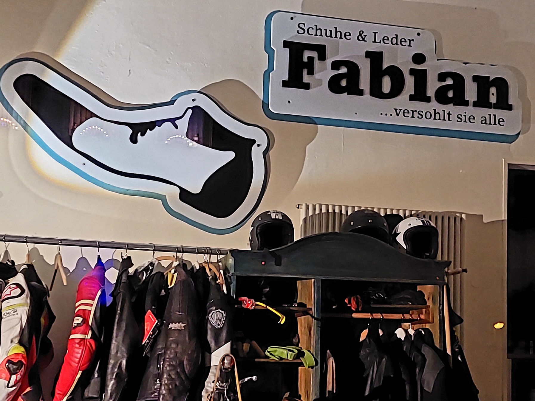 Das ist kein Insidertipp für Anhänger*innen der etwas härteren Gangart, worauf ja auch der Schuh-Kick und das Leder hinweisen könnte, sondern ein Schuster. Kam mir unlängst bei einem abendlichen Kiezwalk vor die Linse. Dass man auf dem Bild gut was erkennen kann, ist meinem relativ neuen Smartphone geschuldet. Ich bin kein Smartphone-Fetischist, der hechelnd auf die neueste Generation wartet, 90 Prozent der Funktionen dieses Digitalschnullers sind mir wumpe, aber über die Qualität der Kamera freue ich mich schon.