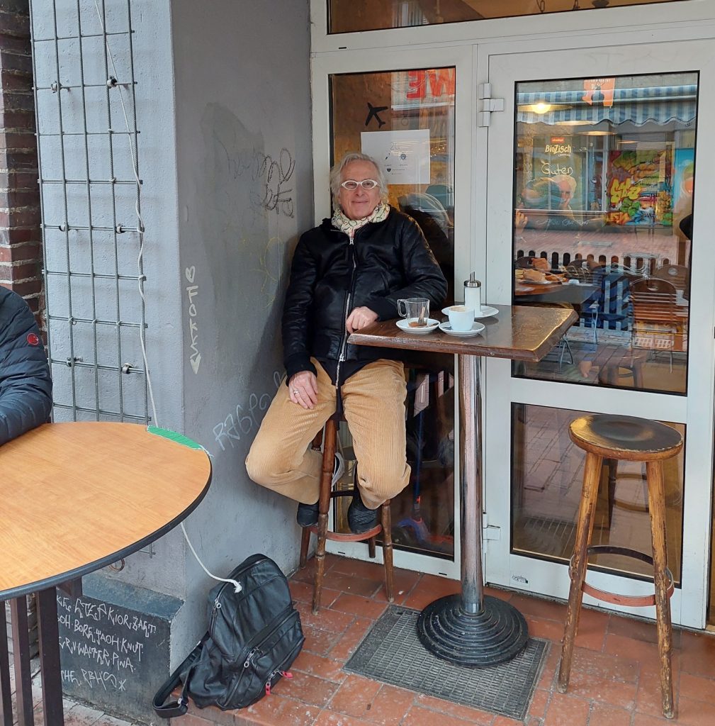 Letzte Dienstbesprechung 2021, 31.12, 9 Uhr, Straßencafé, bei ca.16 Grad. Plus. Nicht normal.
