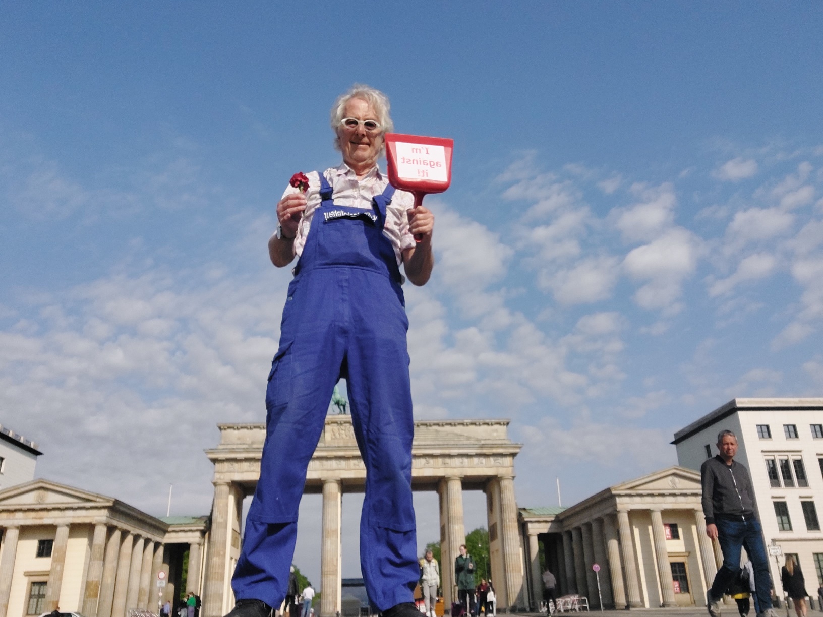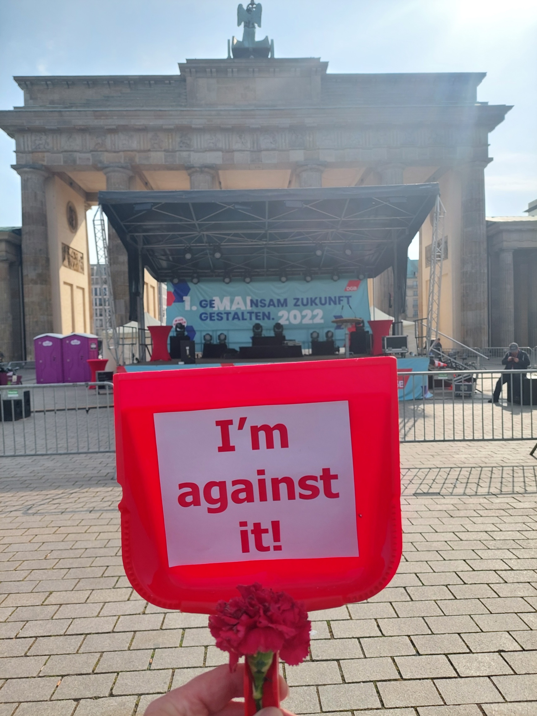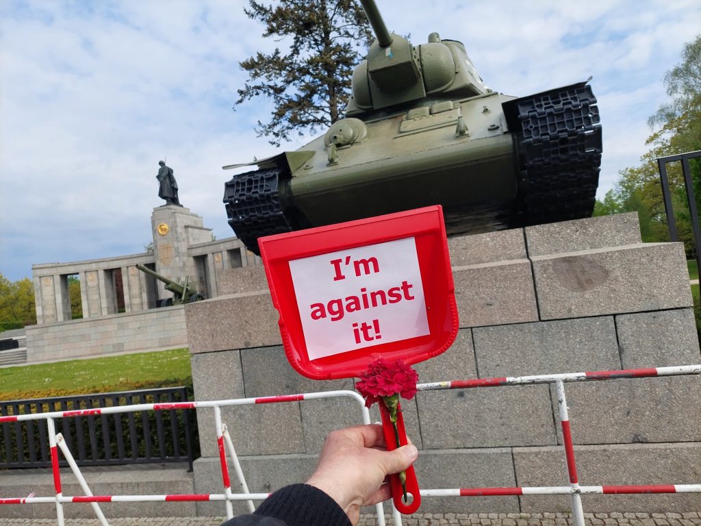 9.54 Uhr: Auf „I’m against it“ Tour vom Brandenburger Tor über DGB Rednertribüne zu Panzer am sowjetischen Ehrenmal.
