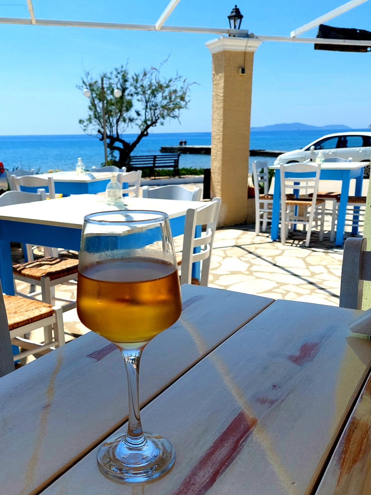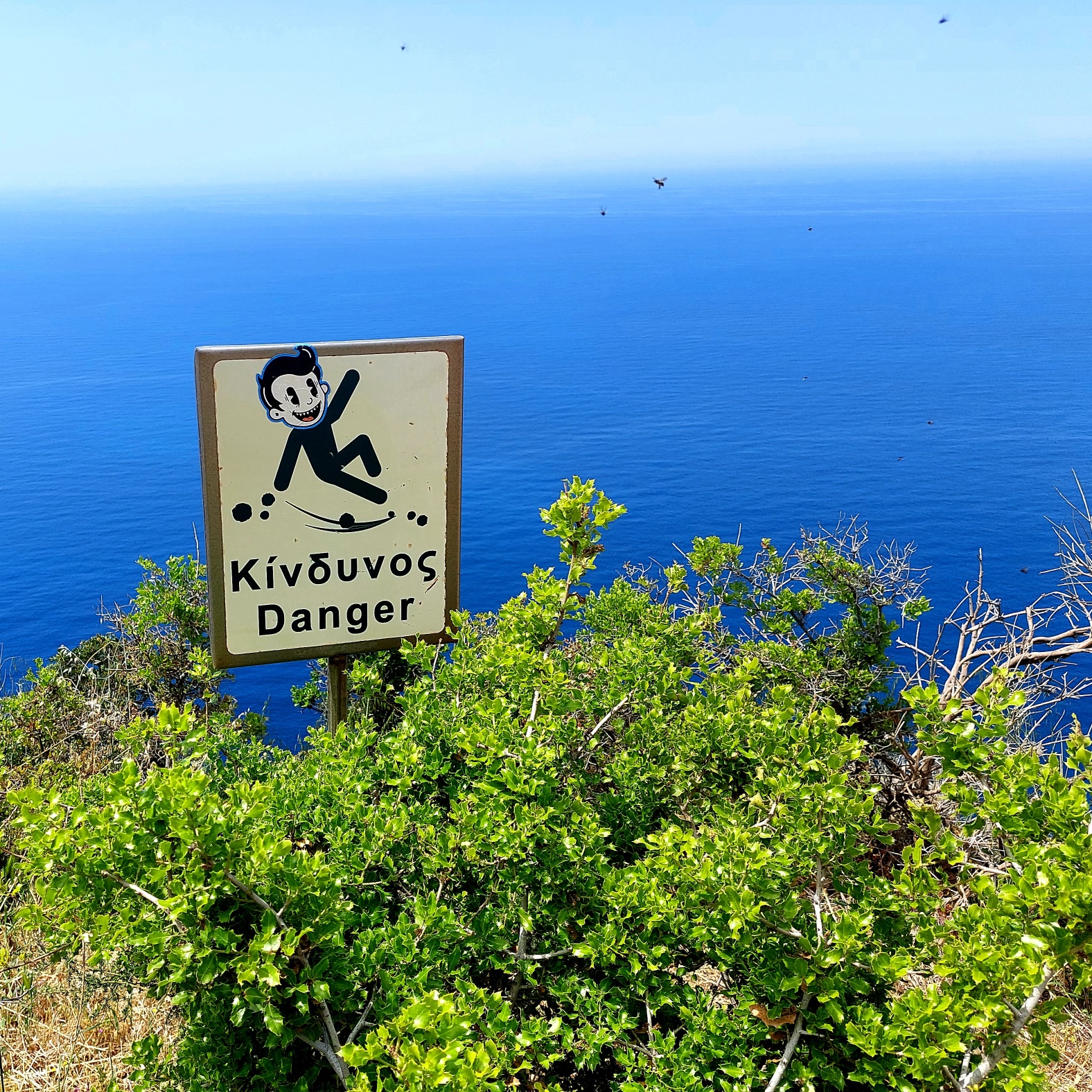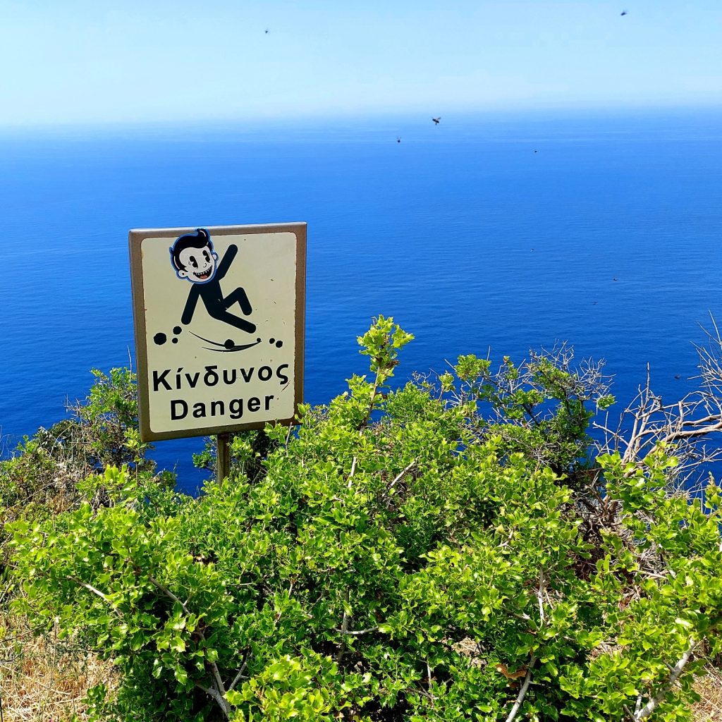 So gesehen, sieht die Welt doch ganz passabel aus. Ich finde es immer wieder erstaunlich, wie schnell sich unter der Sonne des Südens das Denken verflüchtigt. Was nicht an der Menge geistiger Getränke liegt. Beim Wandern trägt man grundsätzlich zwei Rucksäcke: einen mit Wasser, Proviant, Sonnencreme und einen mit Erinnerungen und Gedanken. Der Erste wird immer schwerer, obwohl das Wasser weniger wird, der Zweite wird immer leichter, obwohl ich mir gerne vornehme, im Akt des Schreitens für Klarheit im Hirn zu sorgen. Spätestens an der ersten steilen, sonnendurchglühten sich endlos hinziehenden Steigung erledigt sich das. Man besteht nur noch aus dem Pochen der Halsschlagader und Keuchen. Denken ist Luxus. Und wird überschätzt. Am Ende lande ich doch immer in einer Taverne und im Meer. Da ist Denken auch nicht der Sache förderlich. Lustiges gibt es auch. Ob man wirklich so einen Gesichtsausdruck hat, wenn man über die Klippen 200 Meter tief segelt?