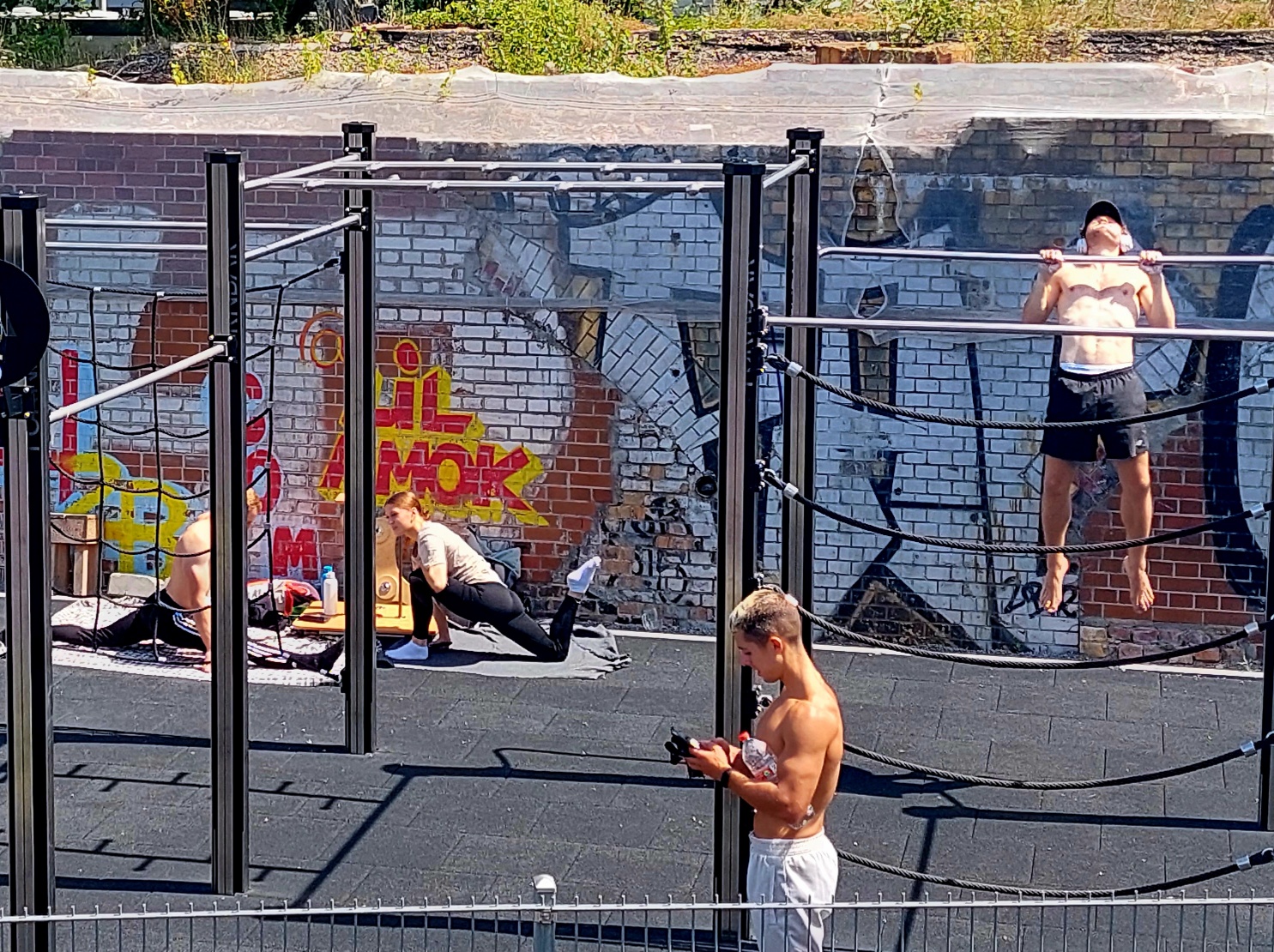 Fitness-Fetischisten. Kreuzberger Park Gleisdreieck.