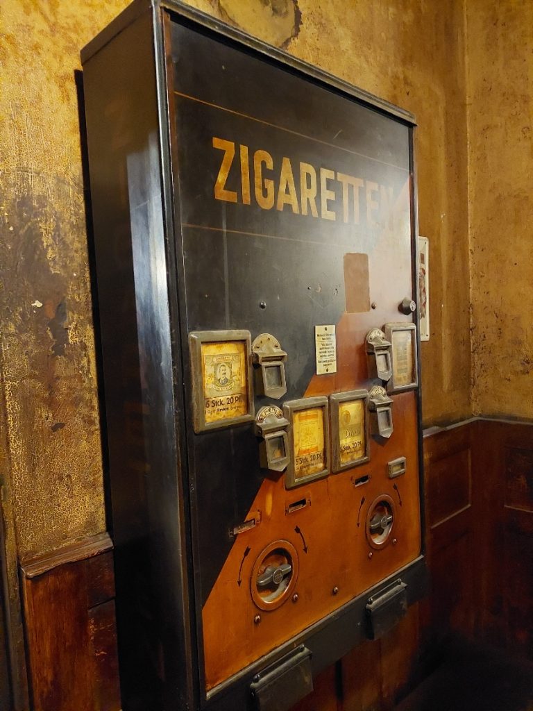 Zigarettenautomat in meiner Stammkneipe „Leydicke“ mit Vorkriegs-Marken wie Garbaty und der aus Kreuzberg stammenden Muratti-Privat.