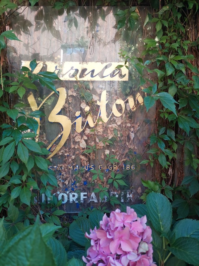 Das gerettete Firmenschild der „Likörfabrik Ursula Bütow“. Eine Weinhandlung aus dem vorigen Jahrtausend, mit Produkten aus der eigenen Brennerei, wie dem besten Weinbrand des Universums. Dort gab sich die reifere Jugend der Welt dem alkoholischen Genuss hin, während der Regen durch das undichte Dach in bereitgestellte Töpfe und Eimer trommelte.