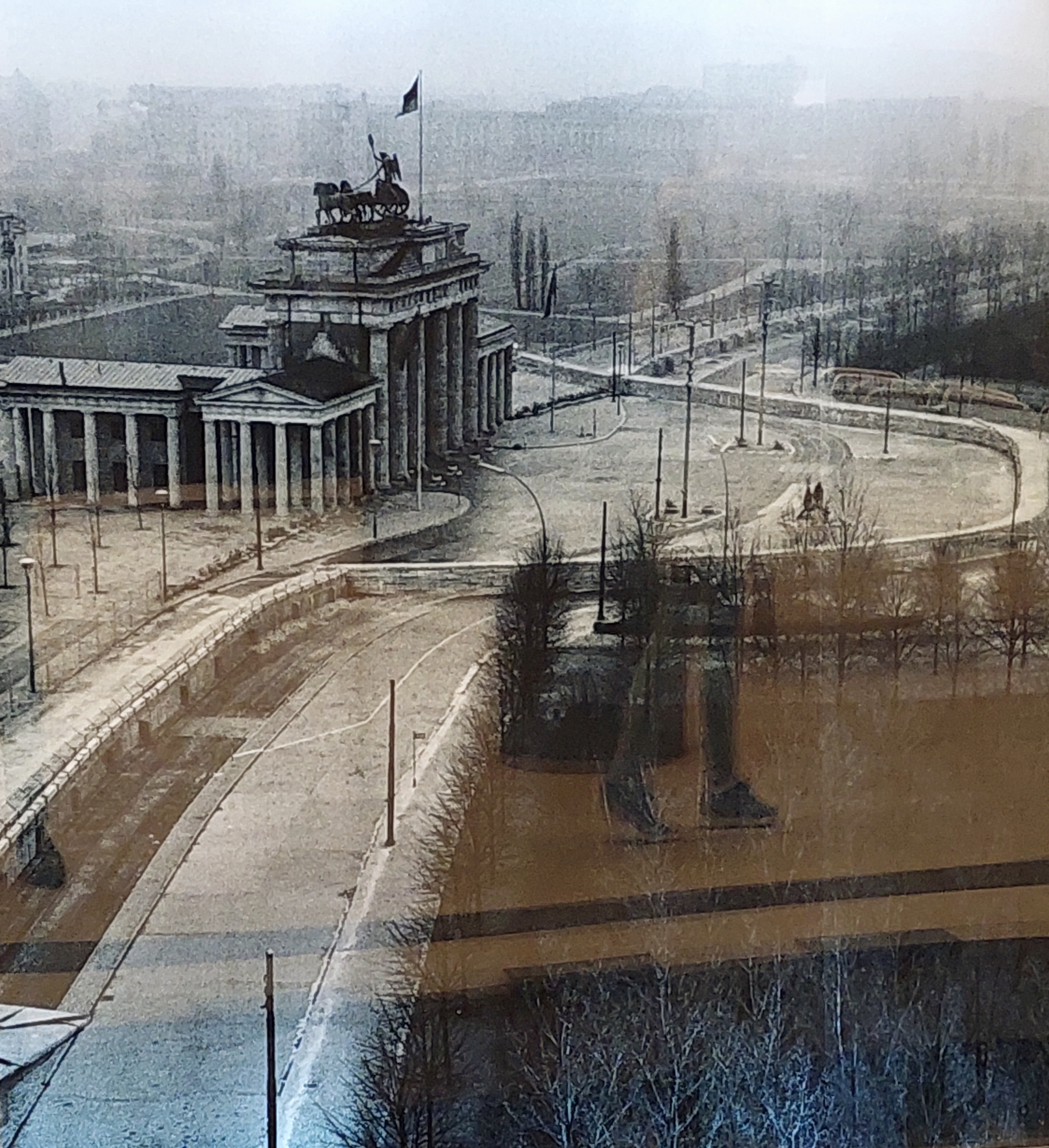 Berliner Mauer am Brandenburger Tor. Foto von 1971 mit meiner Drohne.