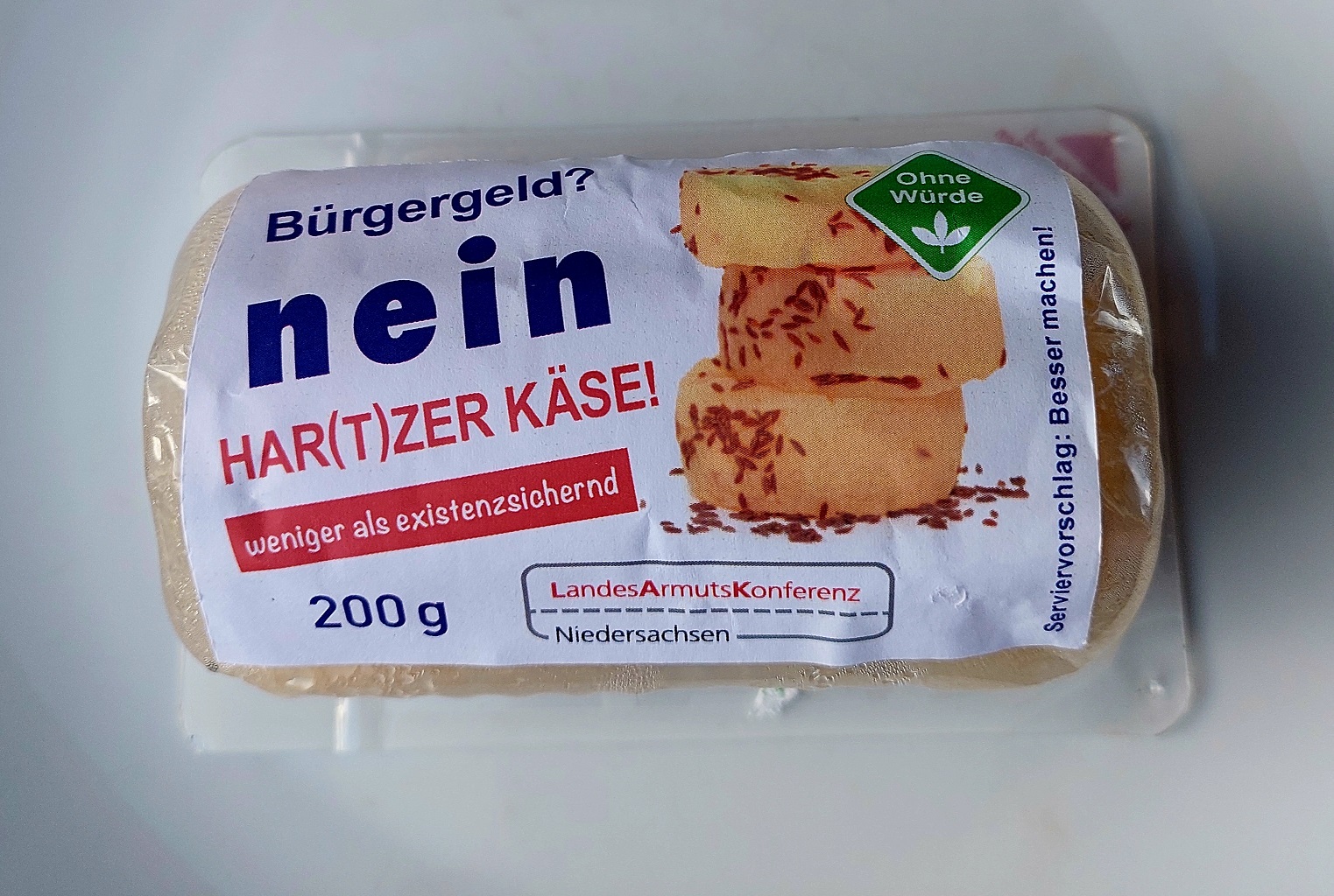 Original. Das ist der Originalkäse einer Aktion zum neuen Bürgergeld, das ab 01.01.2023 in Kraft tritt. Har(t)zer Käse, verteilt vor allen Jobcentern in Hannover.