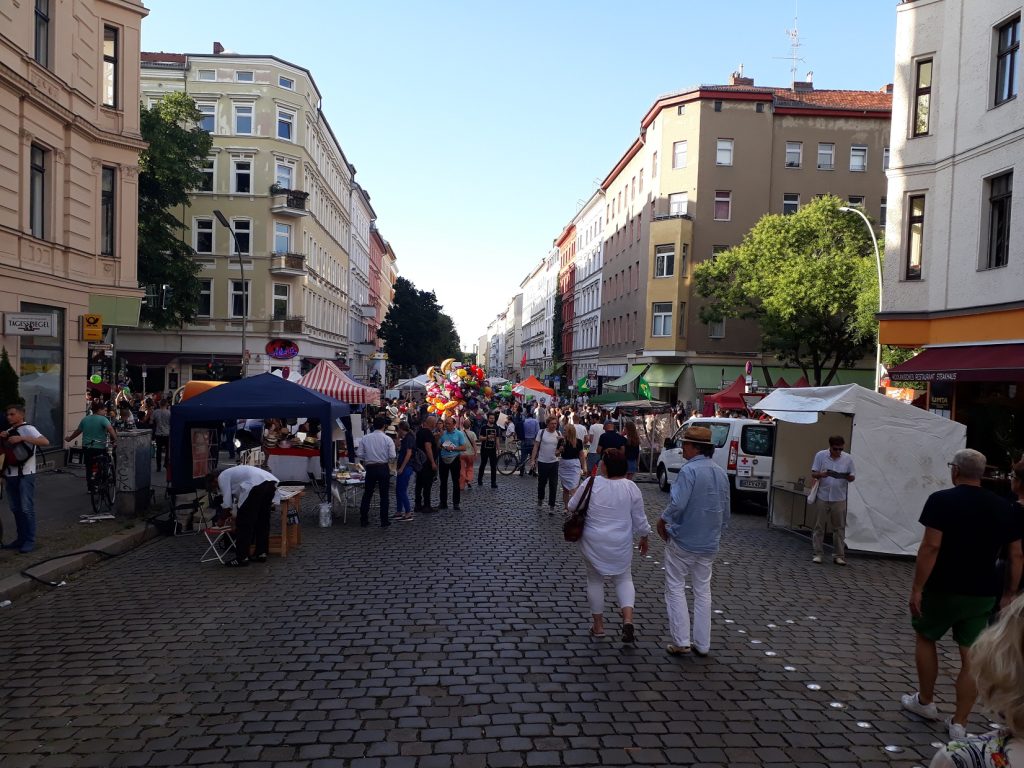 Det is Berlin, lieber Feste feiern als feste arbeiten: Bergmannstr.-Fest 2018. Mein Kiez, über den der Spiegel schreibt: „Und so ist es frühmorgens auf der Bergmannstraße ein Hasten und gebücktes Jagen, den Nachwuchs wasserdicht verpackt vorn auf dem Lastenträger, in ganzen Trauben eilen sie kurbelnd, mancher verstohlen geschoben vom Akku, andere demonstrativ im Liegerad, allesamt beseelt von dem Wissen: Hier ist Kreuzberg, hier ist das wahre Leben im Falschen. Und deswegen gilt auch hier auf dem Radweg die Höchstgeschwindigkeit von »10 km/h«, ein Gebot, das gelegentlich ordnungsamtlich geprüft und nötigenfalls geahndet wird.“