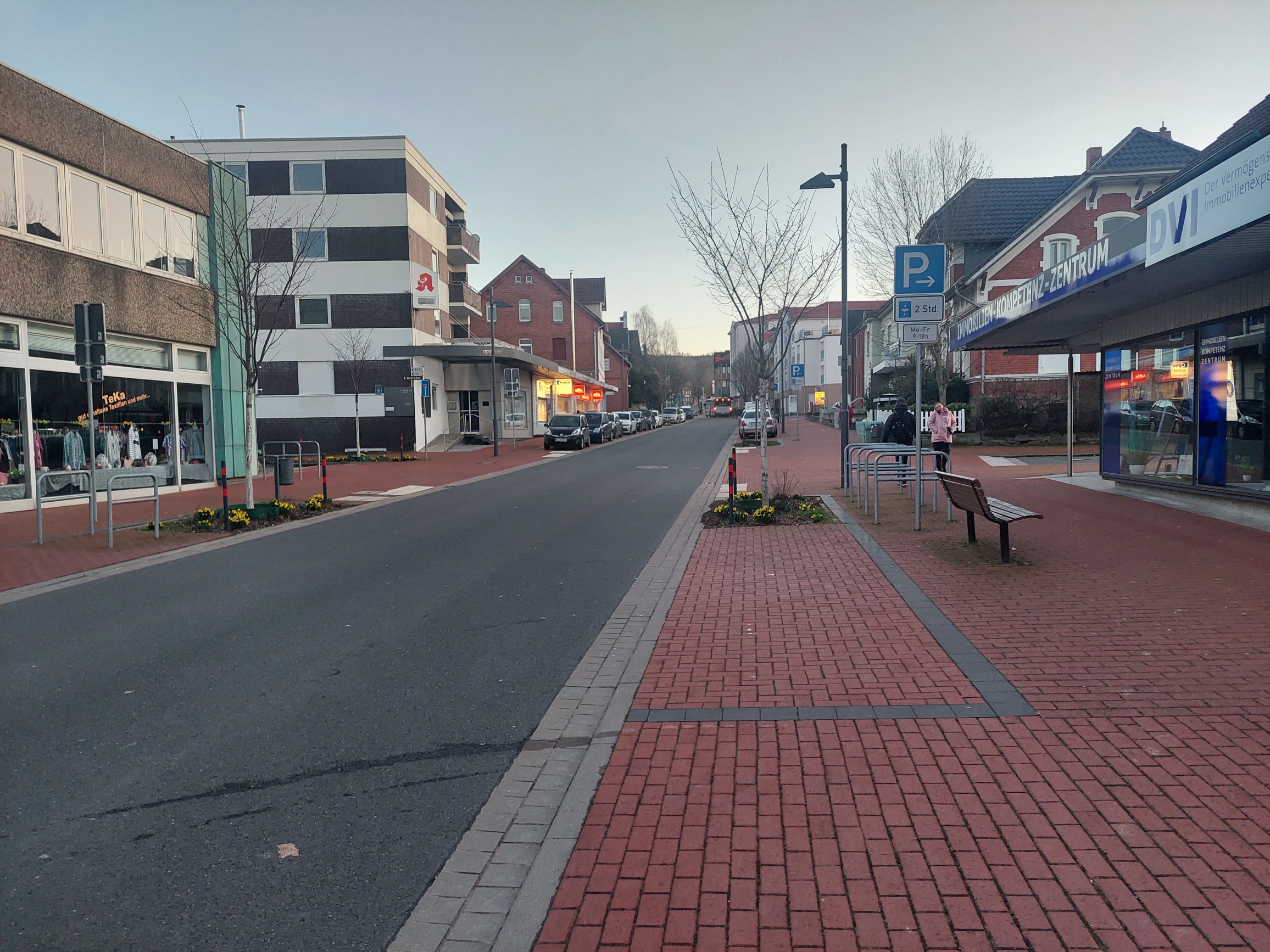 Die bildgewordene Depression. Hauptstraße in Barsinghausen, ein Ort der Vorhölle in der Nähe von Hannover. Was auch nur unwesentlich besser ist. Mitunter verschlägt es mich zu Veranstaltungen, Podiumsdiskussionen etc. in solche Orte. Ich mache sowas sehr gerne, live, nach Zeiten der Seuche, das ist für mich ein Fest. Und die Menschen dort sind fast immer angenehm, zugewandt und engagiert. Aber die Unwirtlichkeit der Städte, überhaupt der Orte im Spätkapitalismus, schlägt nirgendwo unerbittlicher zu als auf deren Bahnhöfen und Ortskernen nach 18 Uhr. Ich bin für Stimmungen sehr empfänglich und das Ambiente solcher Orte versetzt mich umgehend in so tiefe Depressionen, dass ich mich sofort schwerst betrinken oder bekiffen würde, müsste ich nicht ein paar Minuten später auf einem Podium sitzen.