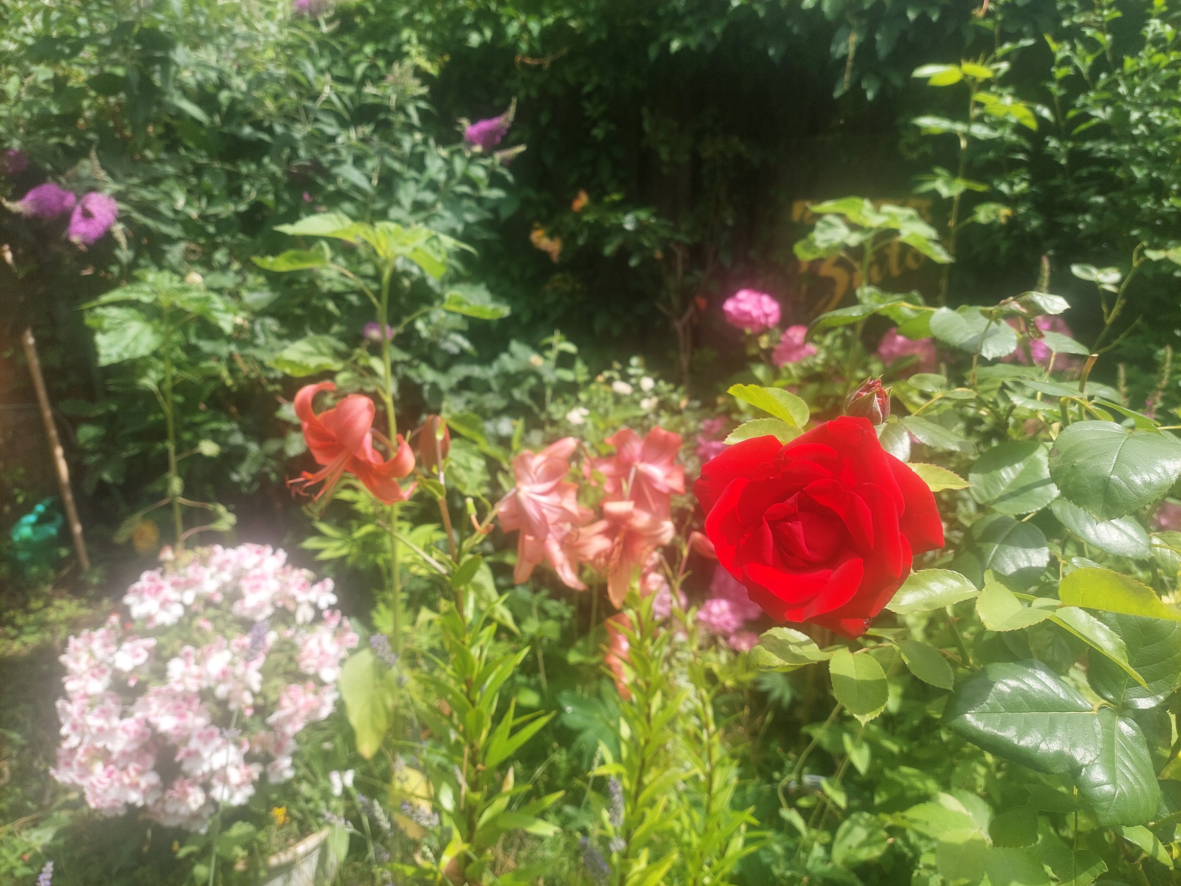 Blumen, Zen und grüne Gärten. Im Rahmen meiner morgendlichen Garten-Zen-Meditation spräche ich, wäre ich gläubig, regelmäßig ein Dankesgebet dafür, dass ich in einer WEG wohne, was keine erweiterte WG ist, wie Alt-Hippies glauben mögen, sondern das Kürzel für Wohnungs-Eigentümer*innen-Gemeinschaft. Wohin mich glückliche Umstände geführt haben. Es war weder Lebensziel von mir, Kanzler zu werden, Lokführer, Pilot oder gar Wohnungseigentümer. Hat sich so ergeben. Schwein gehabt angesichts der aktuellen Mietsituation. Die Geschichte ist für einen übergeordneten, politischen Kontext auch nur deshalb von Belang, weil sie prototypisch für den Paradigmenwechsel in den 90ern steht: Wie aus ehemaligen Hausbesetzern Hausbesitzer wurden. O tempora o mores. Dazu demnächst mehr.