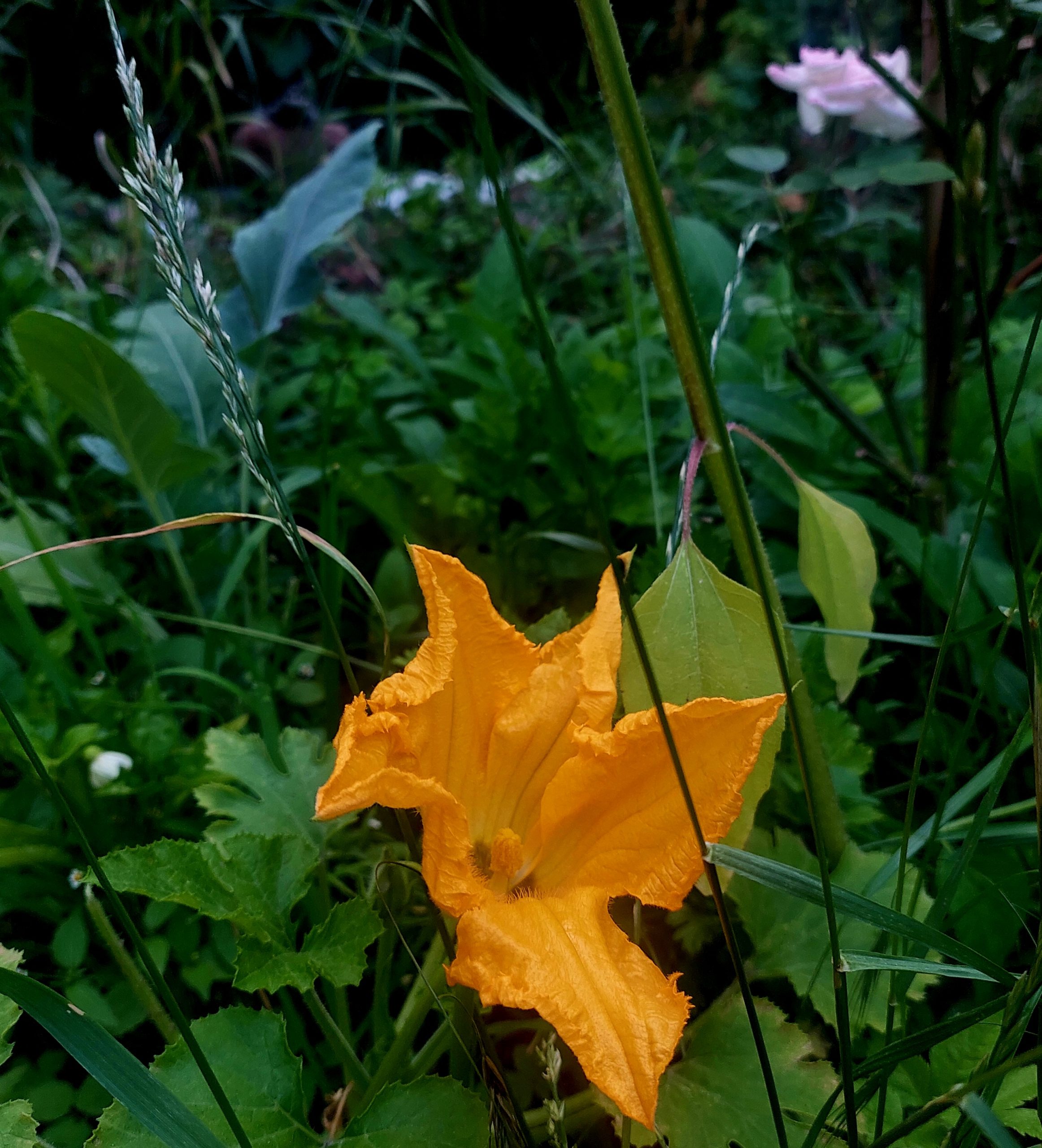 Dramatischer wird’s aber nicht, prosaisch pflückte ich die Blüte, die essbar ist. Natürlich nicht frittieren, es ist ein verbreiteter Unsinn, Blüten zu frittieren. Wer sowas will, soll Pommes oder Calamari essen; der Geschmacksnerven Rache siedet in meiner Fritteuse. Einfach roh essen, am Salat.