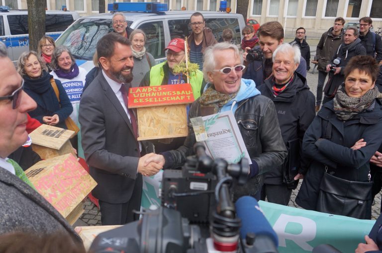Morgen ist Weltarmutstag. Da legt die Landesarmutskonferenz vor dem niedersächsischen Landtag mit einer Aktion (Polit-Aktionskunst!) den symbolischen Grundstein für eine gemeinnützige, nichtprofitorientierte Landeswohnungsbaugesellschaft. Jahrelang gefordert, vor der letzten Wahl endlich ins rotgrüne Programm aufgenommen. Aber man hört nix von der Umsetzung, konkreten Baumaßnahmen. Zu Politik gehört zwingend immer Kommunikation, wie verkaufe ich meine Arbeit, sende Signale an Menschen mit wenig Geld? Aber was ist? Still ruht der rotgrüne See. Also her mit der Polit-Aktionskunst.