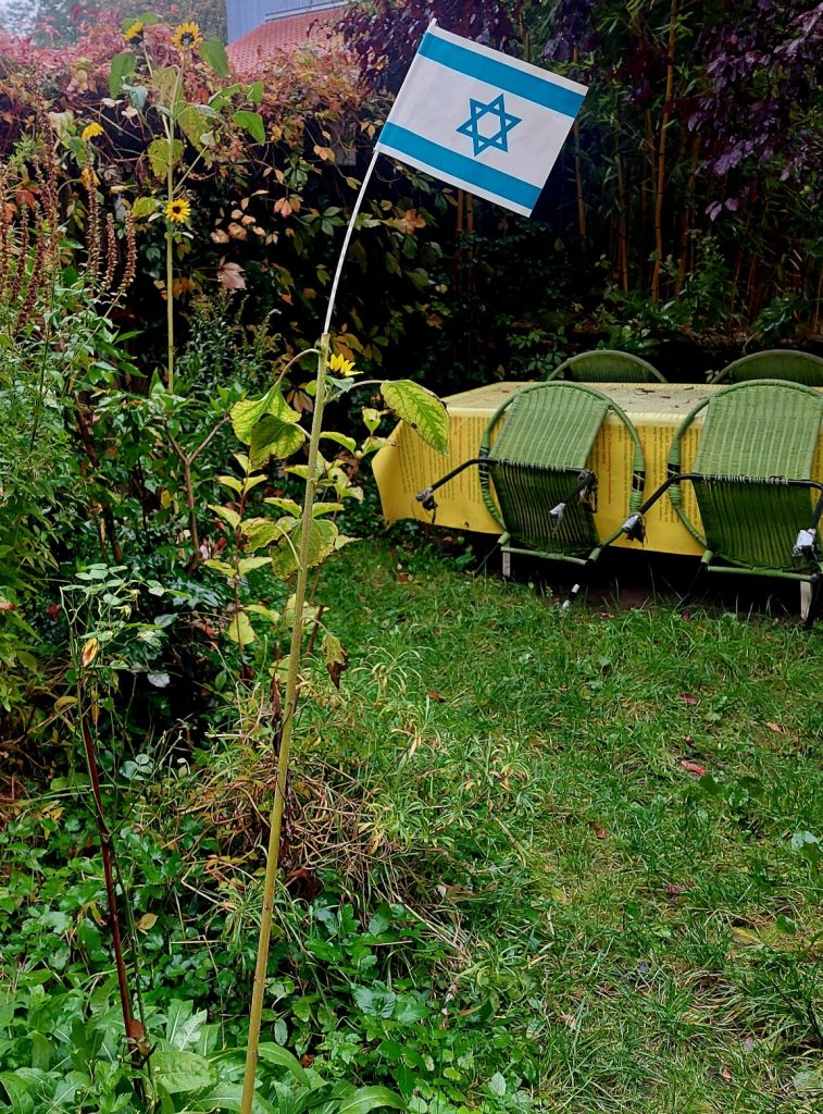 Israelfahne auf Sonnenblume. Ein paar halbverrottete Sonnenblumen „Goldener Neger“ spenden noch den einen oder anderen gelben Farbklecks im zusehends entlaubten herbsttrüben Garten. Ein aus mehreren Gründen schönes Ensemble. Ideologiekritische Feinschmecker wissen, dass die schwarze Community in den USA, und nicht nur da, starke antisemitische Züge hat. Eine ihrer Ikonen neben Malcolm X und Martin Luther King, Louis Farrakahn, ist ein völlig durchgeknallter Antisemit. Er ist eine Art Säulenheiliger der Gangsta-Rap Szene in den USA, Zitat Ice Cube: „ … you can’t be the Nigga 4 Life crew, with a White Jew telling you what to do… „