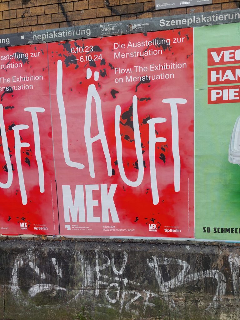 Beim Anblick des Plakates über die Menstruation habe ich mich gefragt, wie dieses jahrhundertelange Tabuthema wohl künstlerisch visualisiert ist. Eine dringend notwendige auch ästhetische Aufarbeitung angesichts von neu, endlich auch öffentlich diskutierten Phänomenen wie Periodenarmut und Menstruationsurlaub. Und angesichts solcher Sprüche wie unter dem Plakat von offensichtlich völlig überforderten X-Chromosomträgern.