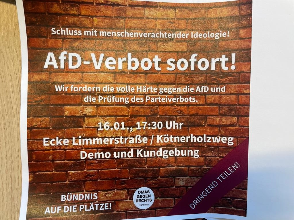 Demo zum AfD-Verbot, Heute, 17.30 Uhr, Hannover. Hab ich leider gerade erst gekriegt. Mit dabei: Omas gegen Rechts. Alter schützt vor Weisheit nicht.