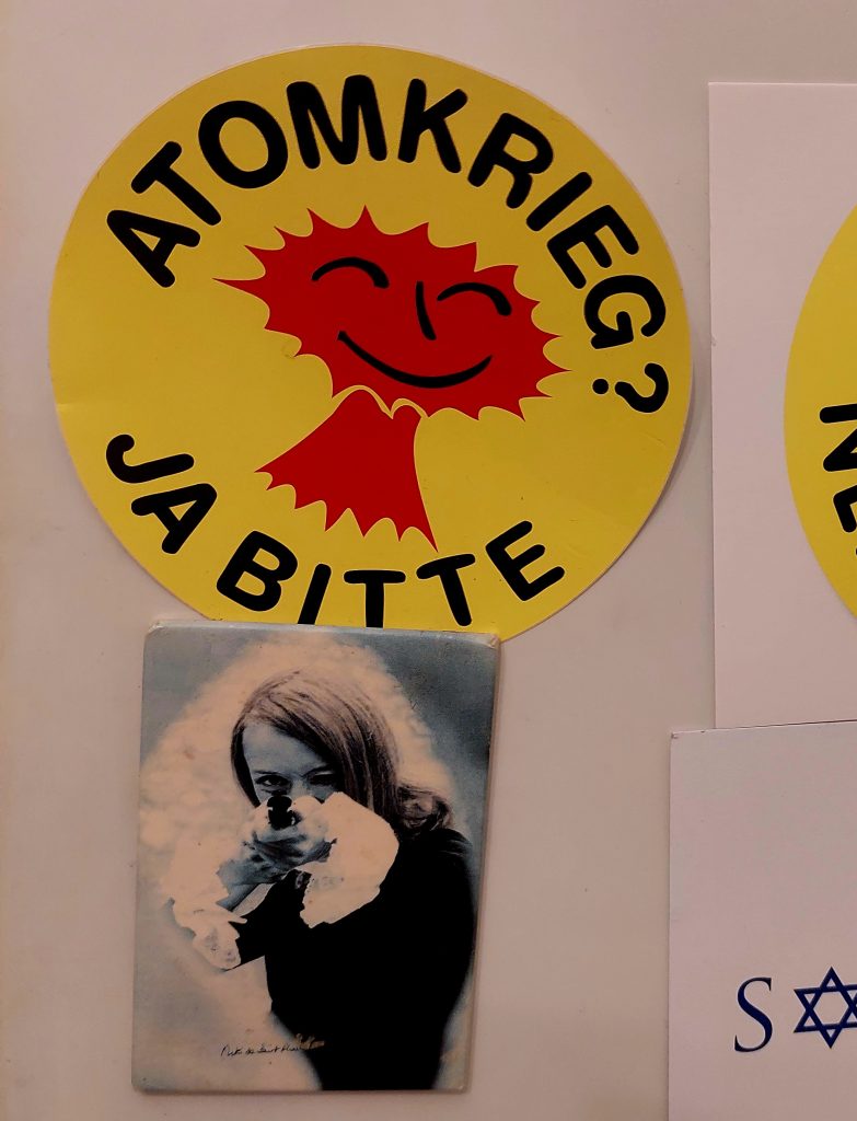 Atomkrieg? Ja Bitte. Gesehen an meinem Kühlschrank. Der Aufkleber stammt aus einer Aktion vom Juni 2022 und kann bei mir bestellt werden. Der Magnet zeigt die feministische Künstlerin Niki de Saint-Phalle, die als Elfjährige von ihrem Vater vergewaltigt wurde.