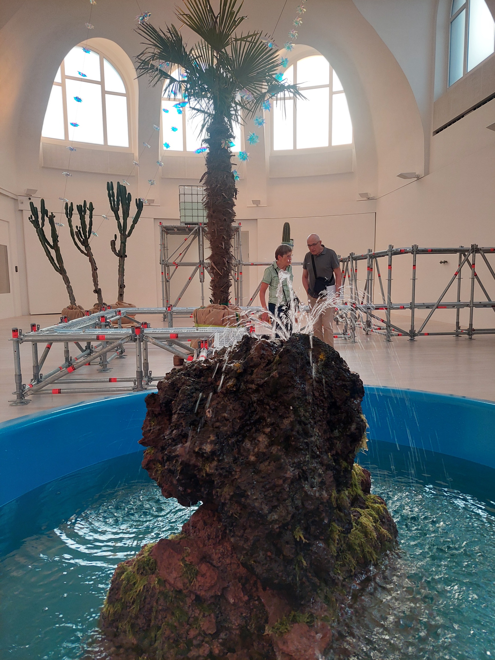 Kunst. Saisoneröffnung in der hannöverschen Kestnergesellschaft. Alles, was Rang und Namen hat, war da. Ich auch, weil bis 19 Uhr die Drinks umsonst waren. Ab 19.05 Uhr schwelgte ich in Jugenderinnerungen, weil ich genau an der Stelle, wo im Bild oben die Palmen sind, Schwimmen gelernt habe. Früher war das ein öffentliches Schwimmbad, jetzt ist es der mit Millionen gepamperte Kunsttempel-Treffpunkt der hannöverschen Bürgergesellschaft. Dementsprechend war die Kunst belanglos, die Palmen oben sind echt. Eigentlich sollten sie künstlich sein, wg. Kunst. Früher hampelten bei solchen Veranstaltungen noch ein paar bunte Künstlerhoffnarren rum, um Brosamen vom Bürgertisch zu picken. Mittlerweile sehen selbst die verspießert aus. Sehnsucht nach Berlin überfiel mich, da sehen die Leute bei sowas wenigstens bunt aus. Wussten Sie übrigens, dass Berlin eine Autodichte von 334 PKW auf 1.000 Bewohnerinnen hat?