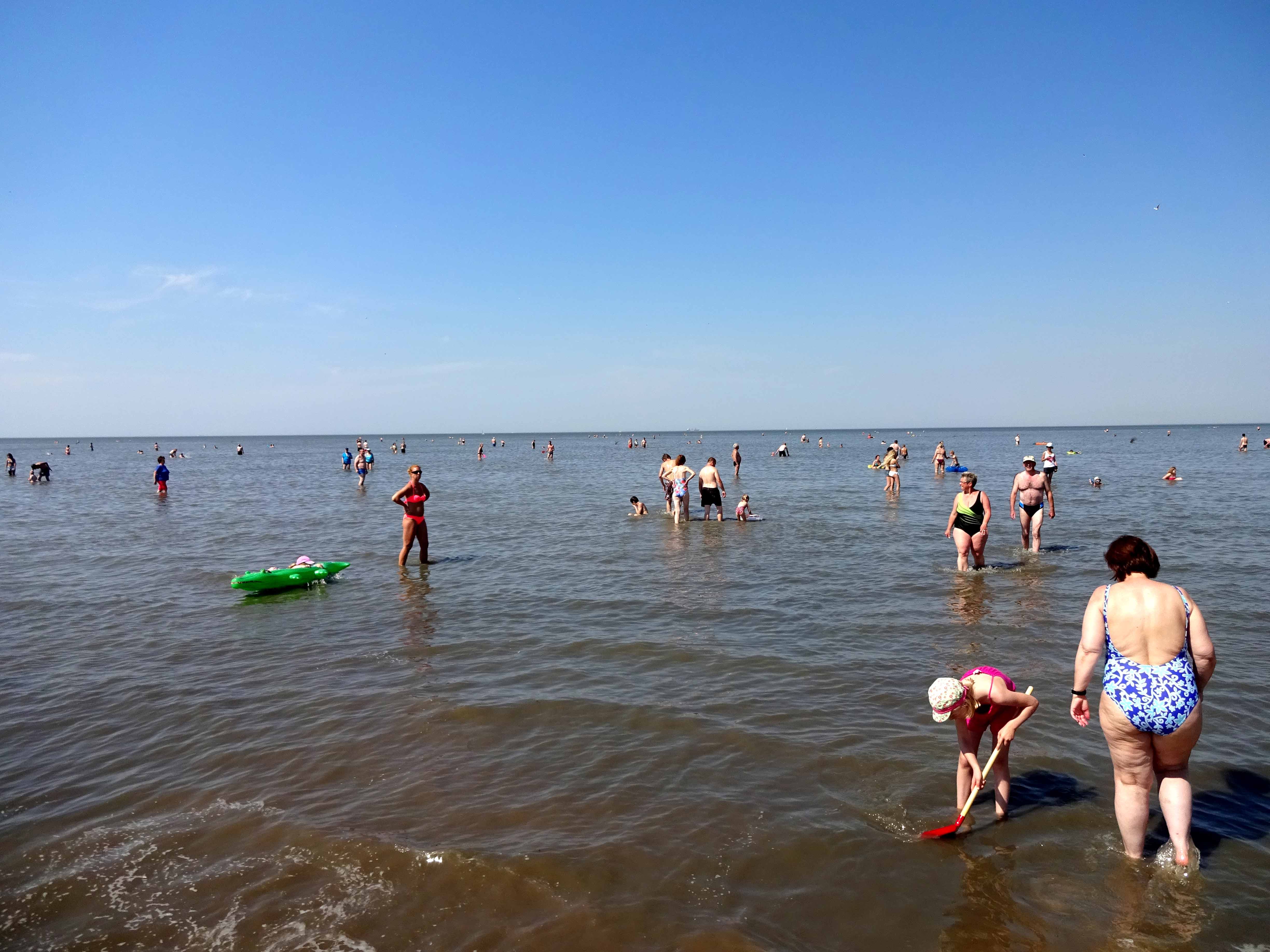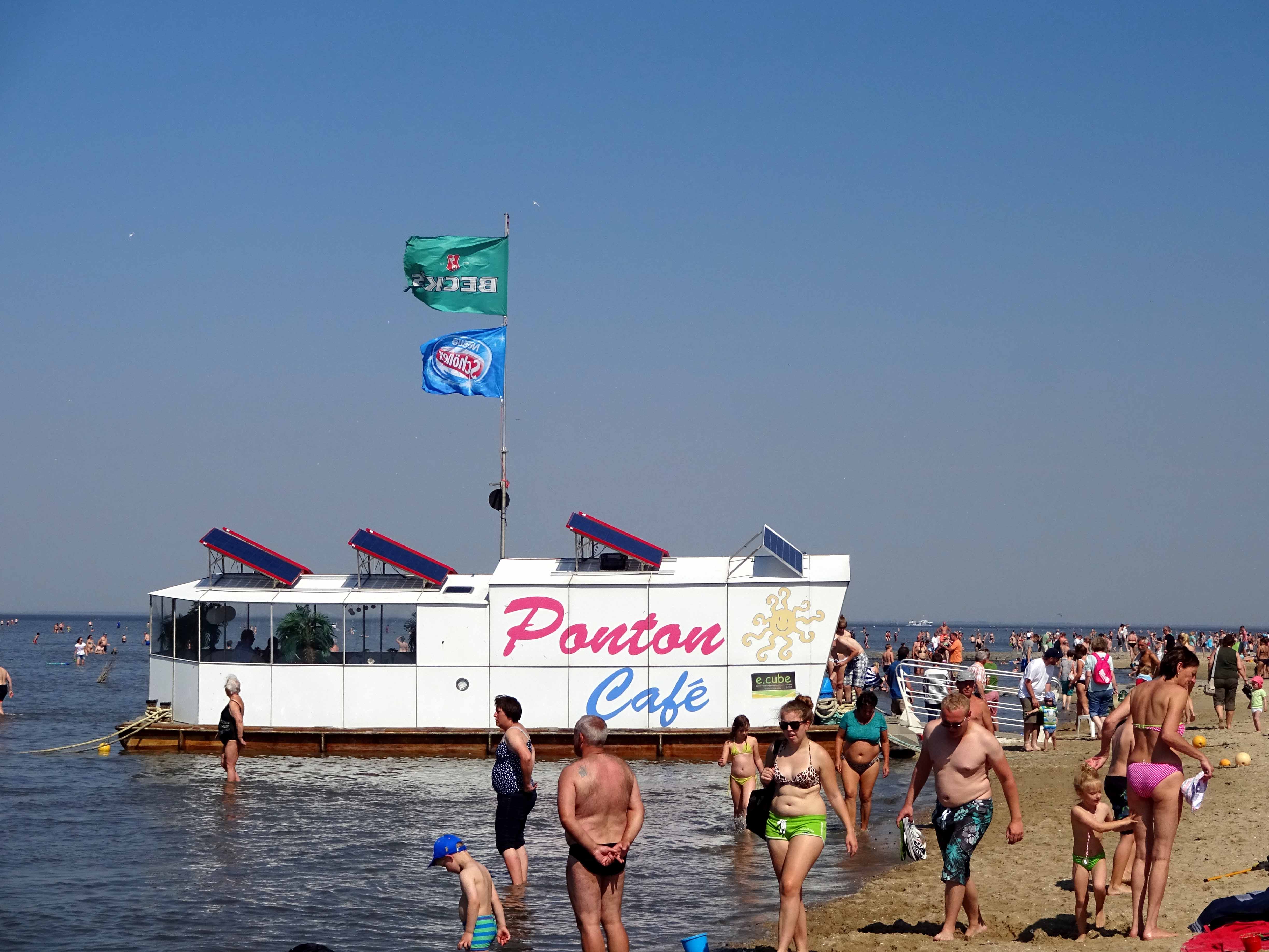 Witzmeer. Ich watete wie ein Verrückter kilometerweit hinaus in der Hoffnung, wenigstens mal meine Badehose benetzen zu können. Vergebens, dieser elende Tümpel ging mir immer nur bis an die Knöchel. Auf der Promenade spielte ein Blaskapelle und eine Sängerin heulte wolfsähnlich Schlager aus dem letzten Jahrtausend dazu, am Strand war es voll, dass man zum flanieren Platzmarken hätte verteilen müssen. Wo man hinblickte, es sah genauso aus wie ich mir die Hölle in meinen schlimmsten Alpträumen ausgemalt hatte.