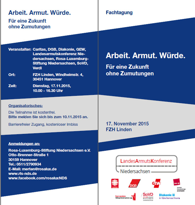 Anmeldung hier LAK Fachtag Armut Arbeit Würde 17.11.15-Flyer, kommt in Massen, gibt auch kulturelles Rahmenprogramm. Überraschend,beeindruckend, sensationell! Wer nicht kommt, ist nicht dabei gewesen. Umgekehrt gilt das Gleiche!