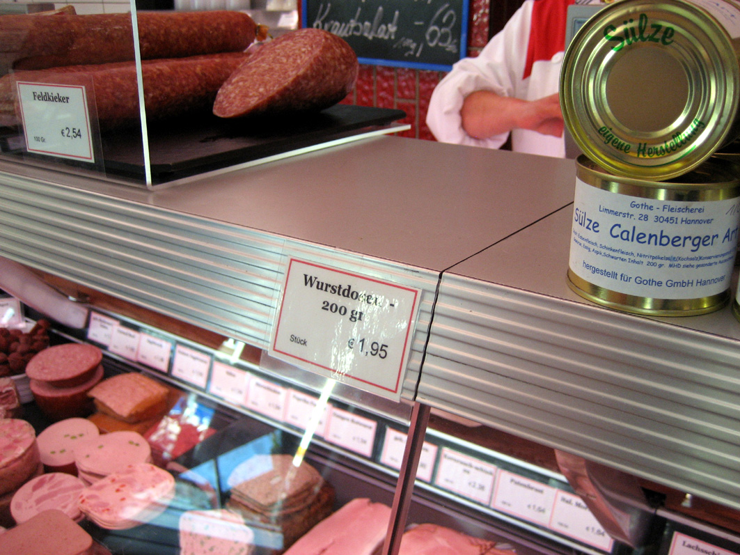 Fotos von Wurstdosen sonder Zahl liegen auf meinen Festplatten, hier vom Fleischer meines Vertrauens.