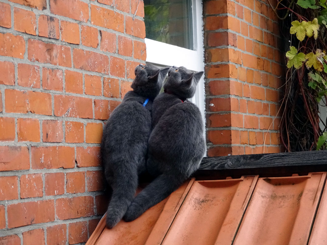 Sind die nicht sühüüüß?! Nachbars Katzen, Kartäuser, auf meiner Veranda beim Katzen-TV gucken. Ich schaff mir eher keine Katzen mehr an. Im Garten ist einfach kein Platz mehr für Gräber.