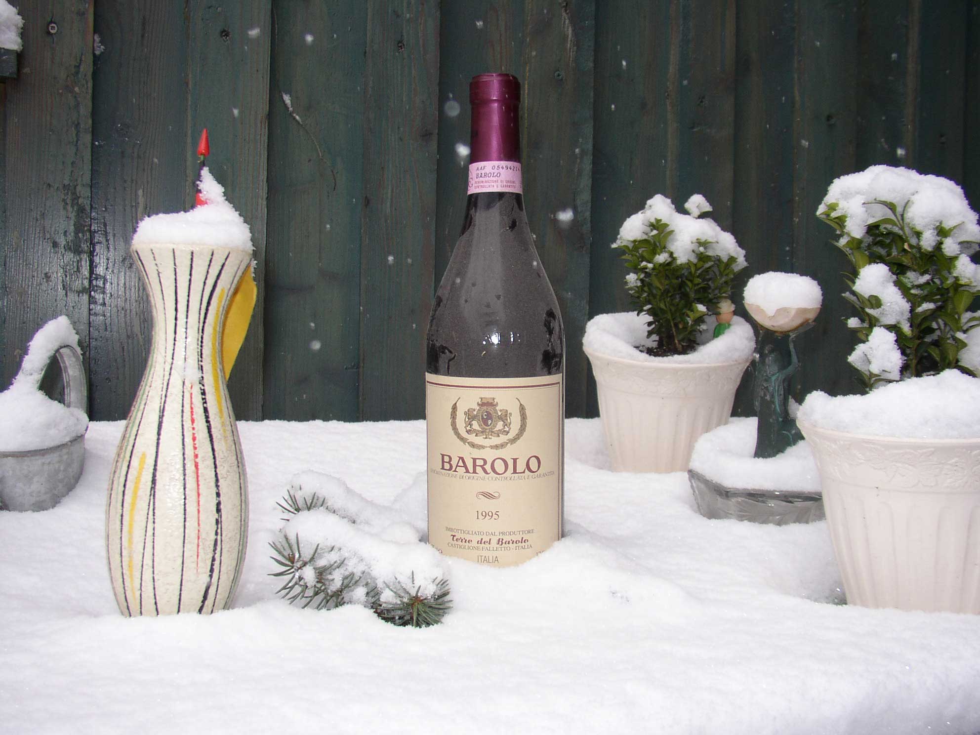 Barolo 1995. So was wird im Internet heute locker für 200 Euro gehandelt. Was um alles in der Welt hatte ich damals im Kopf, so einen Tropfen arktischen Temperaturen auszusetzen? Sollte das ein flammender Protest gegen Konsumterror sein? Das waren die 90er und nicht die 70er! Die 90er waren das Zeitalter der zynischen Affirmation. (Von dieser Formulierung war ich gleich trunken, hab’s sofort gegoogelt, zu schön, um von mir zu sein. Ist es auch nicht. Lass ich aber mal so stehen.) Ich bin Zeit meines Lebens antizyklisch, aber das wäre nicht antizyklisch gewesen, das wäre einfach nur bescheuert. Wobei: Barolo wird überschätzt.