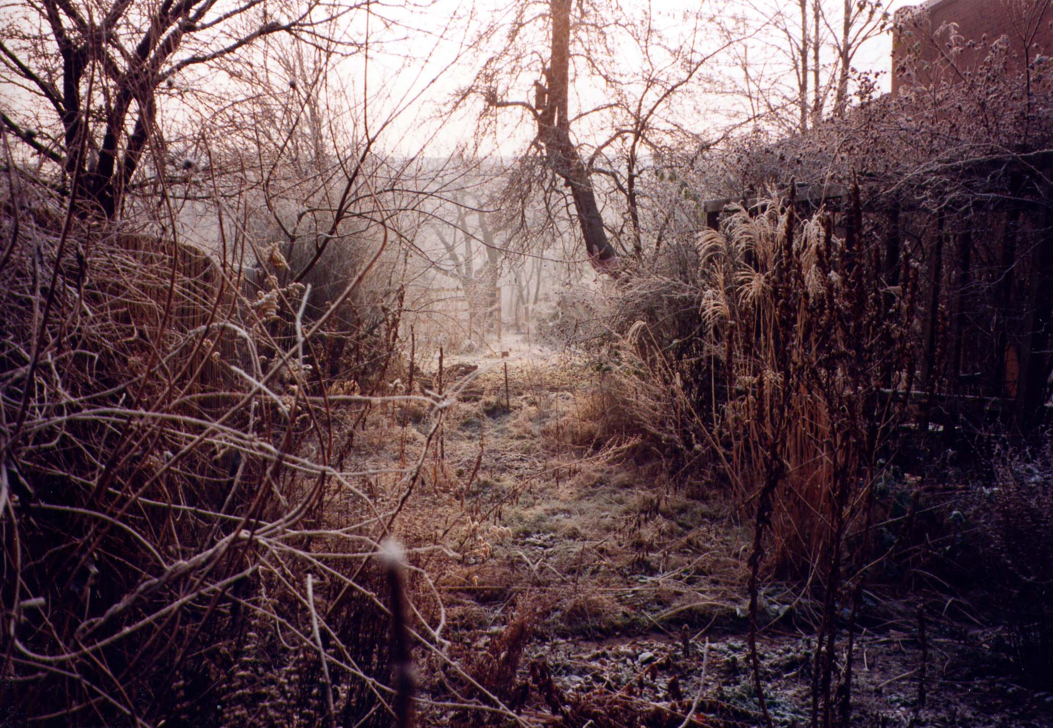 Weihnachten 1990er Zuhause. Bevor auf einem großen Teil des Gartens eine Kindertagestätte (!) errichtet wurde, war er nach dem Abbruch des SCHUPPEN 68 in einer Umbruchphase. Fast wie es bei 1. Mose 1 heißt: „… und die Erde war wüst und leer ….“