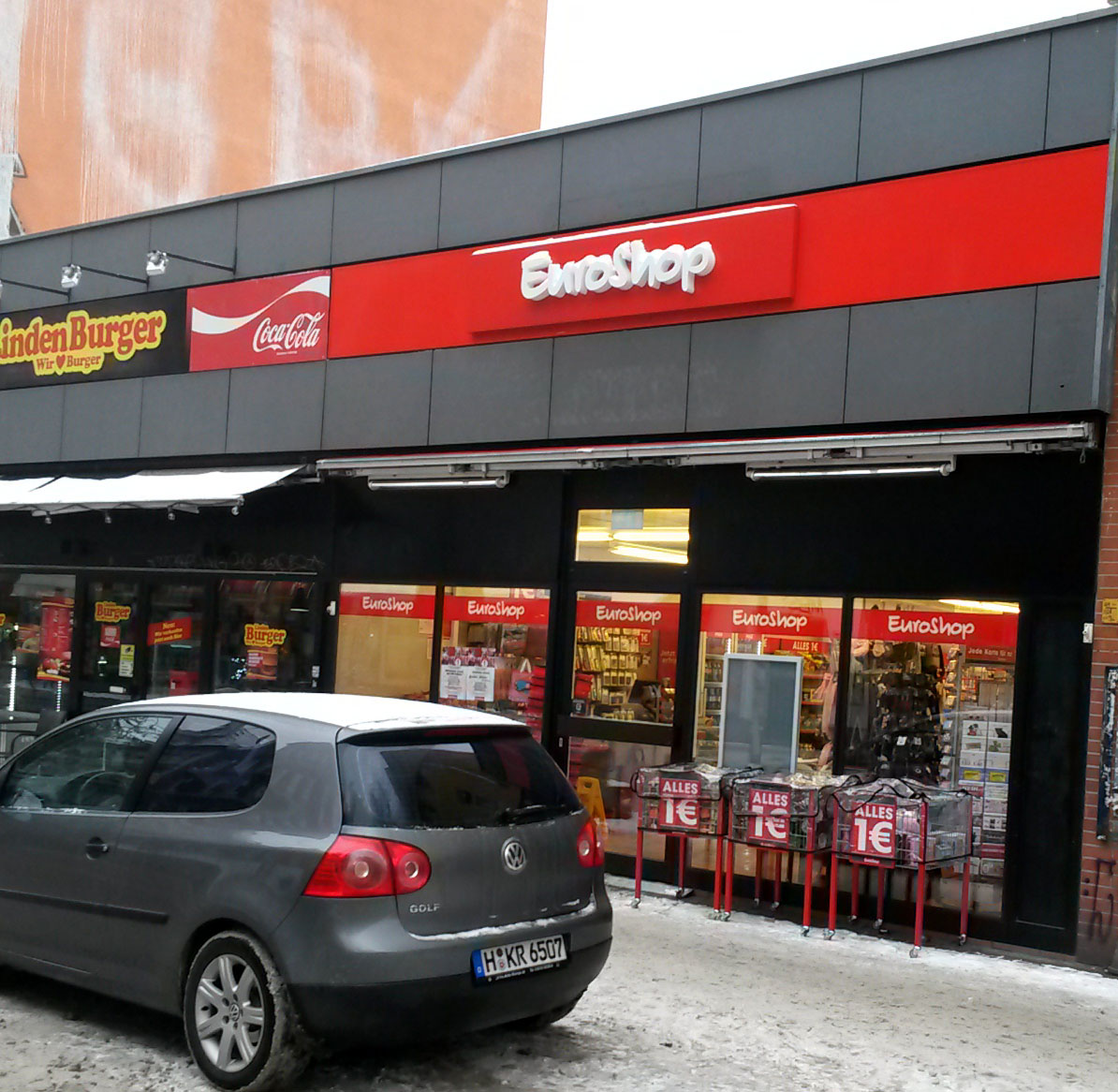 Dieser verkackte Laden hat noch nicht mal einen Namen, sondern nur eine Funktionszuschreibung: Hier gibt es haufenweise billigen Dreck für 1 Euro. Gegenüber hatte bis vor ein paar Tagen noch eine Billigbude auf, die wenigstens einen Namen hatte: T€DI.