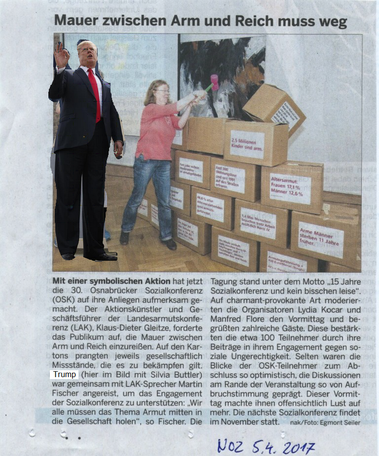 Trump ist endlich zur Vernunft gekommen und hat seine Mauer-Obsession in richtige Bahnen gelenkt. Er reißt jetzt welche ein, die zwischen Arm und Reich!