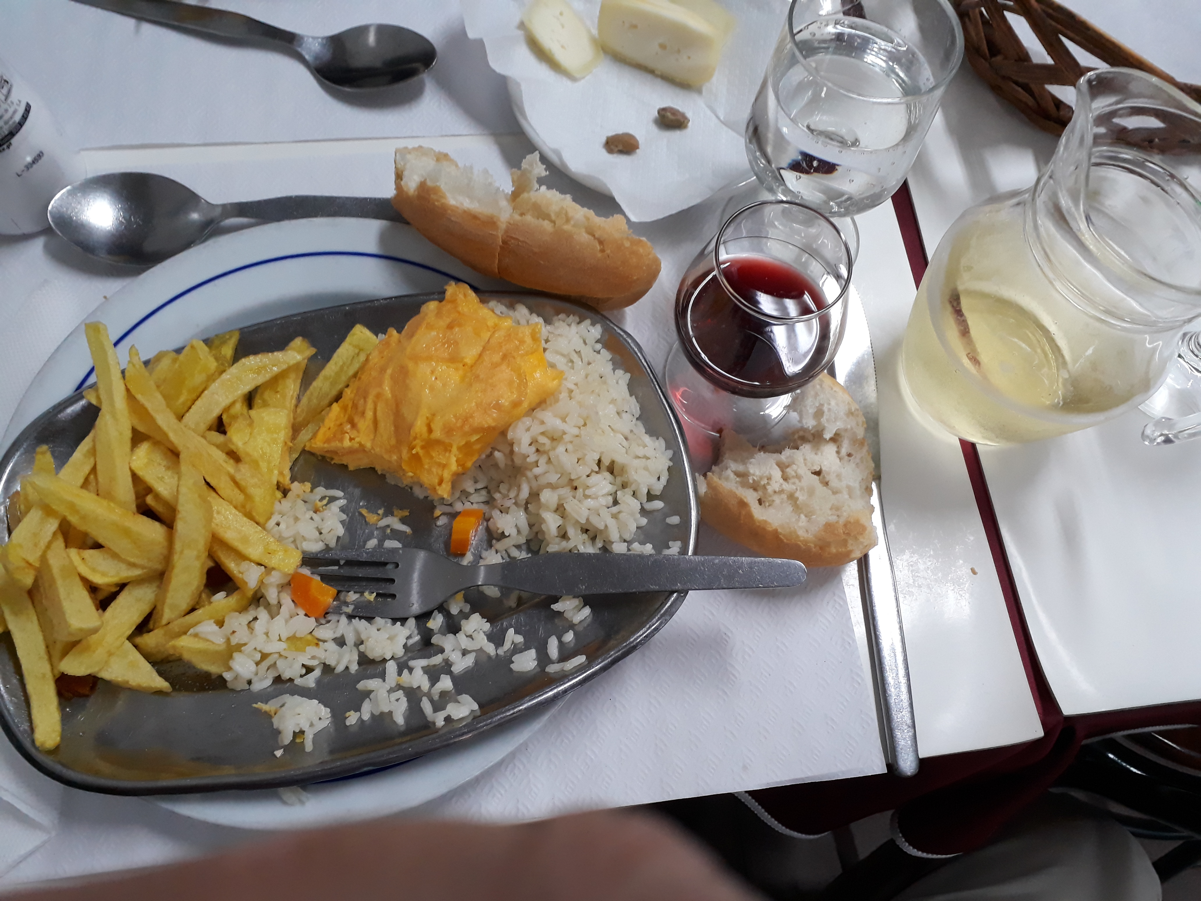 Jetzt bin ich in Lissabon im Barrio Alto in einer kleinen Gasse und das gesamte Essen vor mir kostet mit normal Port, vinho Verde, Wasser, Bica und Maciera ein Viertel des obigen Glas Port. Macht auch glücklich. Und breit. Ehrlich gesagt bin ich von dem Zeug so breit – der Weinbrand war dreifach wohl – dass ich mit meinen Wurstfingern dir Tasten kaum noch treffe. Hicks, würde Donald sagen.