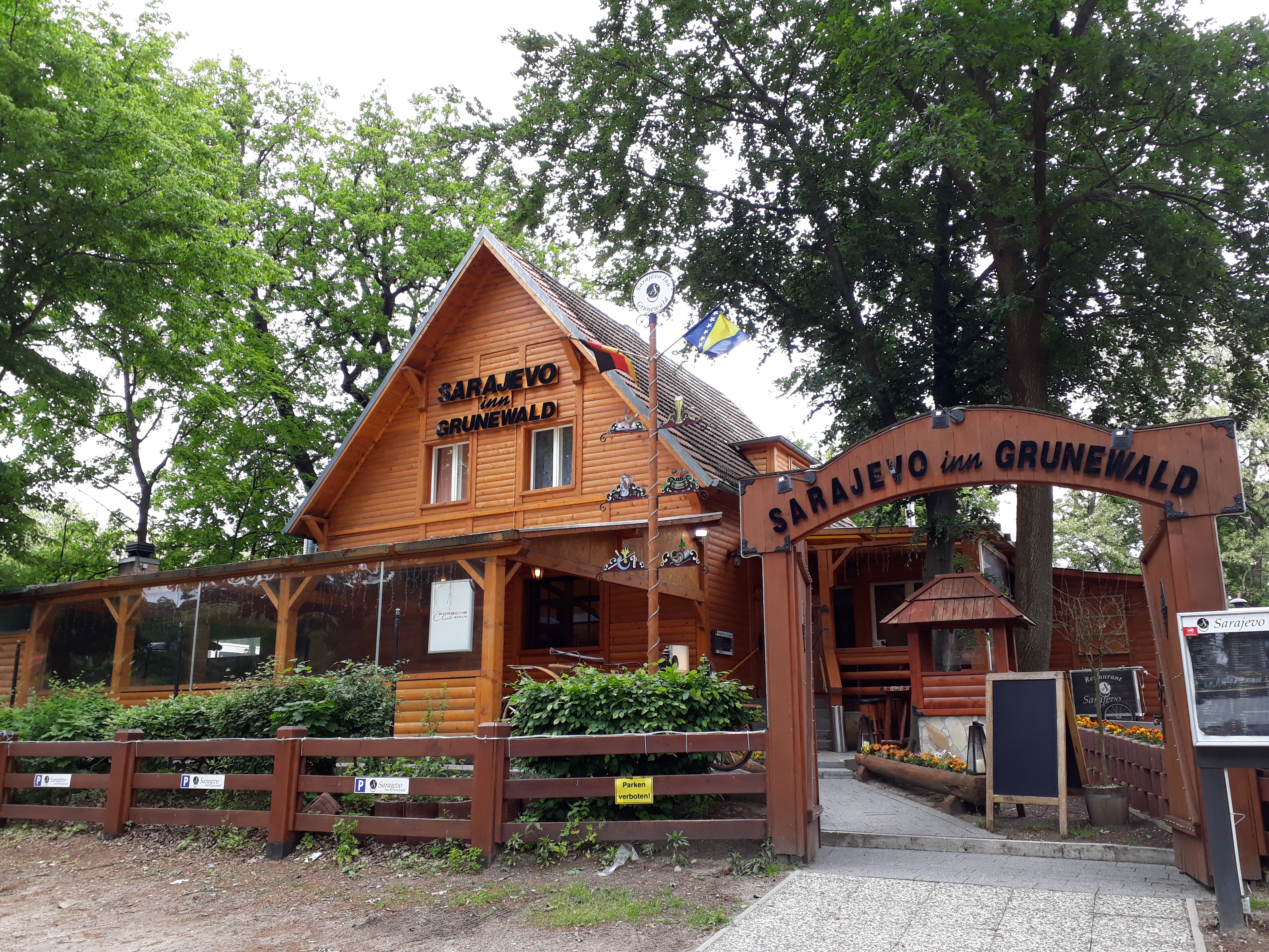 Sarajevo inn Grunewald. Ich dachte immer das liegt in Jugoslawien (Ex, aber ich werde mich nie an diesen völkischen Irrsinn bei den Balkanesen gewöhnen). Grunewald ist ein Stadtteil in Westberlin (meine automatische Rechtschreibkorrektur kennt nur Ostberlin…), in dem früher die Reichen und Schönen wohnten. Da ich zwar nicht reich aber sehr schön bin, müsste ich da jetzt auch wohnen, aber in so einer Villen Gegend möchte ich noch nicht mal zum Trocknen auf der Wäscheleine hängen. Zum Durchfahren und Wandern auf dem Teufelsberg ist es aber ganz ok.