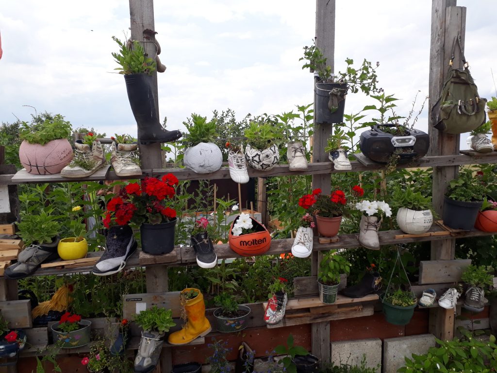 Fussbälle einem sinnvollen Verwendungszweck zugeführt. Auf den Allmende Gärten des Tempelhofer Feldes.
