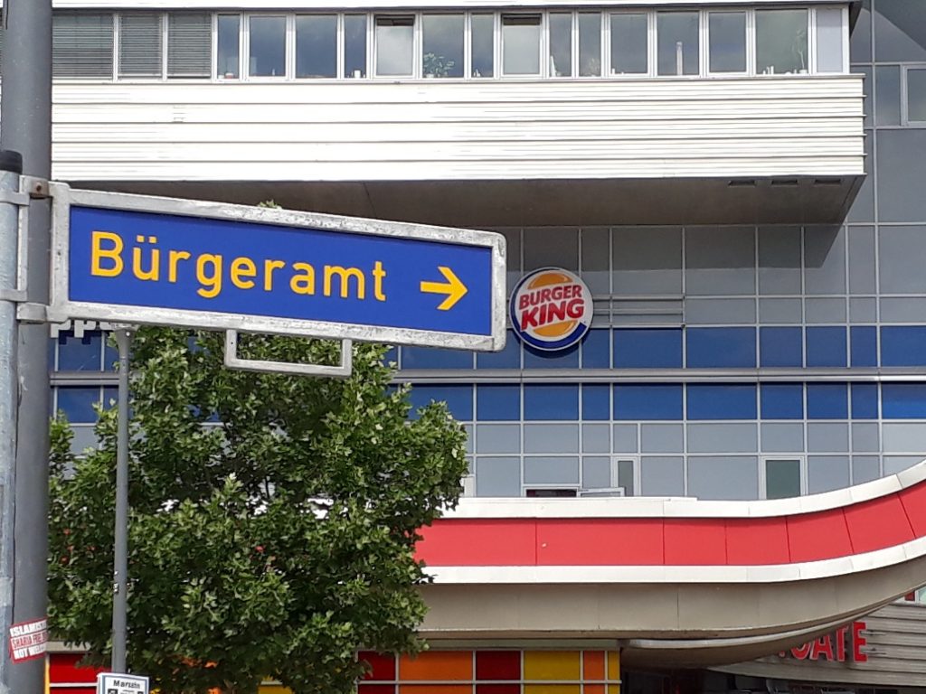 Ich weiss nicht, ob der Bürger King ist im Bürgeramt von Marzahn, das hier ausgeschildert ist. Ich weiß dass Marzahn einer der sichersten Bezirke in Berlin ist.