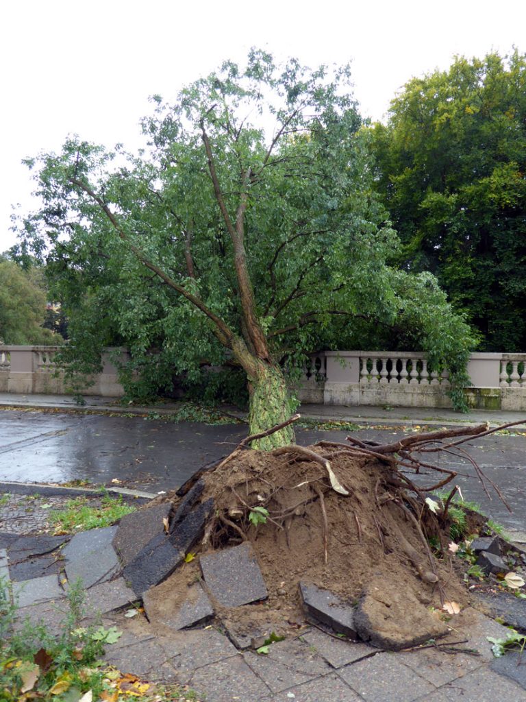 Entwurzelt. Baum nach Sturm Oktober 2017, Körnerpark Berlin Neukölln.