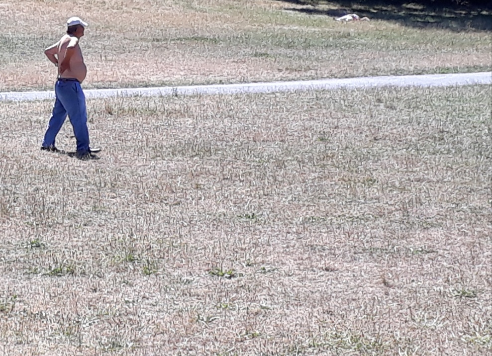 Verbranntes Gras. Ein schrecklicher Anblick.Hätte ich den Bauch aus Datenschutz und Gründen der Würde nicht aufnehmen dürfen? Wer seine Umwelt so scham- und würdelos in der Öffentlichkeit mit so einem Anblick belästigt,hat es ganz sicher verdient, in meinem Blog gewürdigt zu werden. Den Anblick des verbrannten Rasens finde ich allerdings noch bedenklicher. Es gibt in Berlin keinen einzigen öffentlichen grünen Grashalm mehr. Wir hinterlassen im wahren Sinn verbrannte Erde.