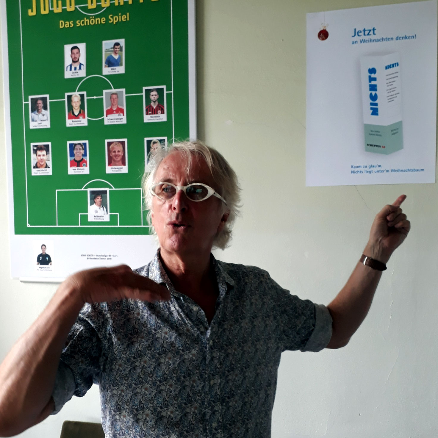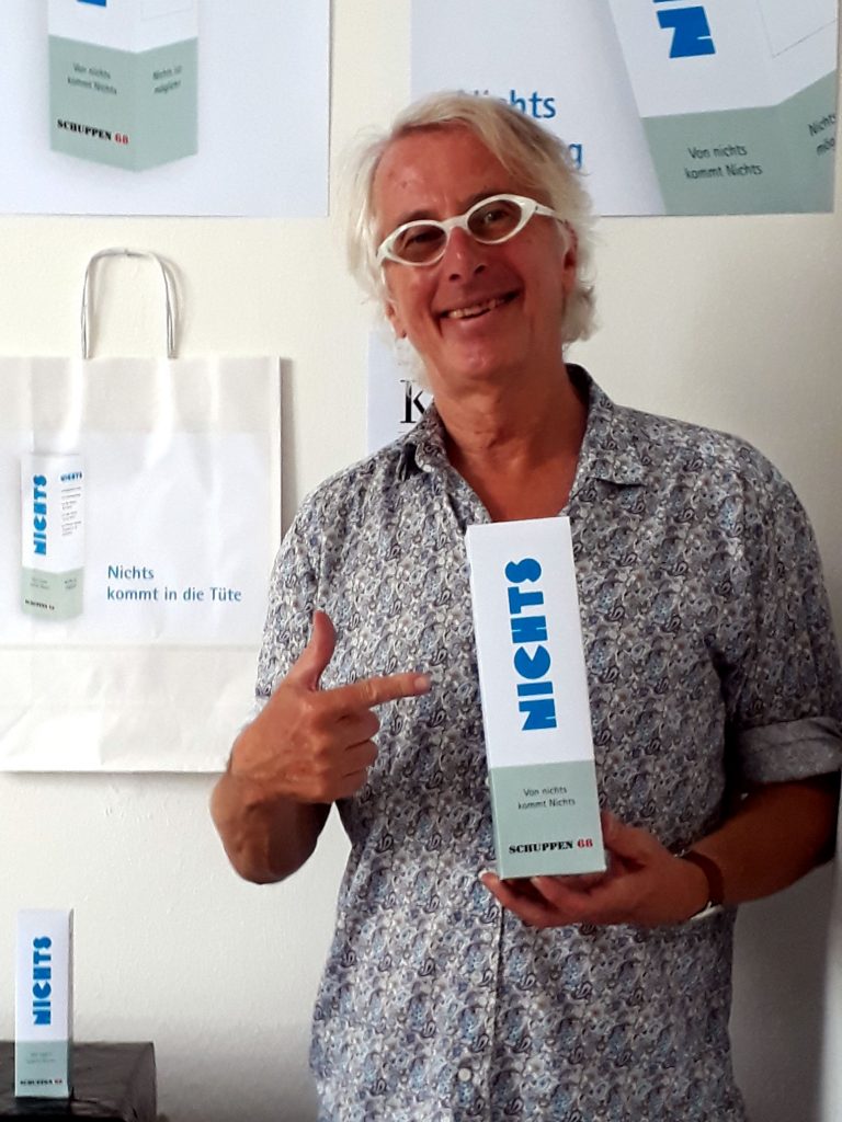 Die Campagne zu Nichts nimmt immer mehr Gestalt an. Im Bild präsentiere ich einer ebenso breiten wie staunenden Öffentlichkeit Nichts in verschiedenen Varianten, so auch in der preisgünstigen Familienpackung. Später, im internen Kreis, ging es um die Vermarktung. Von Nichts kommt Nichts und die Kosten der Campagne, die Investitionen in Material und Personal, müssen sich amortisieren. Kunst ist Kunst, alles schön und gut, aber die findet nicht im luftleeren Raum statt: Die Veranstaltung heißt Kapitalismus. Ich wünschte mir eine andere, aber ich wünsche mir auch eine eigene TV-Show. Das Leben ist eben kein Wunschkonzert und so ist für Nichts ein Return on Investment definiert, der sogenannte RoI. Hier spielt das Weihnachtsgeschäft eine zentrale Rolle. Darauf habe ich dann nachdrücklich im internen Kreis hingewiesen. So charmant und gewinnend ich in der Außendarstellung sein kann, so beinhart bin ich nach drinnen, wenn es um die Erreichung der festgelegten Planziele geht.