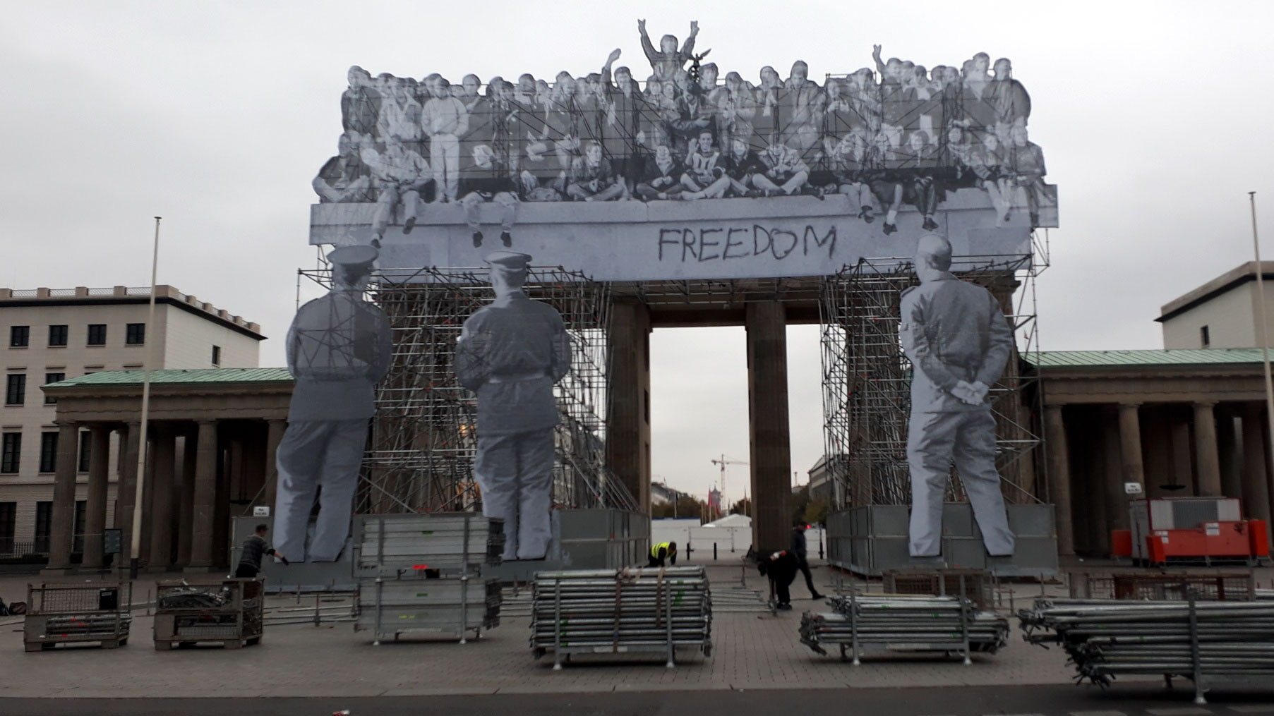 Aufbauarbeiten zur Einheitsfeier am Brandenburger Tor.