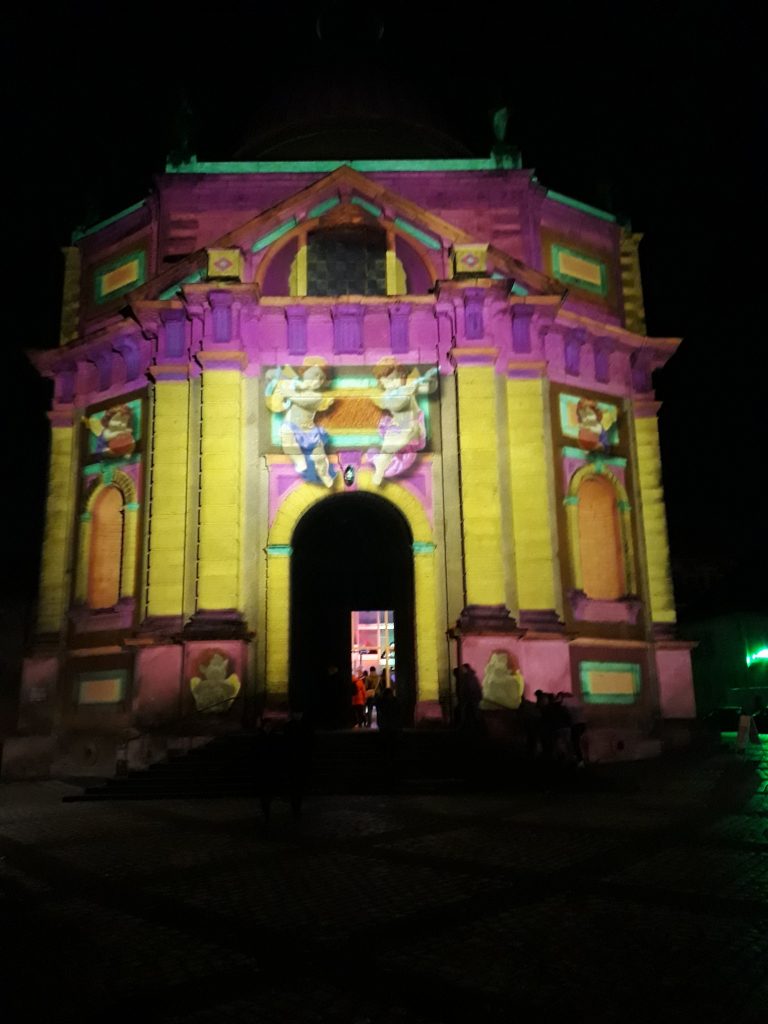 Clemens Basilika, beim Lichtkunstfestival „Hannover leuchtet“. Aus Berlin importiert, woher sonst, aber legitim. Nett anzusehen, man sieht die eigene Stadt in einem anderen Licht, eine Perspektive, die auch für das andere, das eigene Leben nie schaden kann. Schön fand ich bei der Clemens Basilika, der einzigen Kirche in ganz Norddeutschland mit komplett italienischer Architektur, die Barockputten. Keine coole Kunst in der Lichtinstallation, die sich an die Postmoderne ranwanzt, sondern was herzerwärmendes in dekonstruierten Zeiten. Außerdem war ich in der Kirche Messdiener, da kommen Erinnerungen hoch: Introibo ad altare dei …
