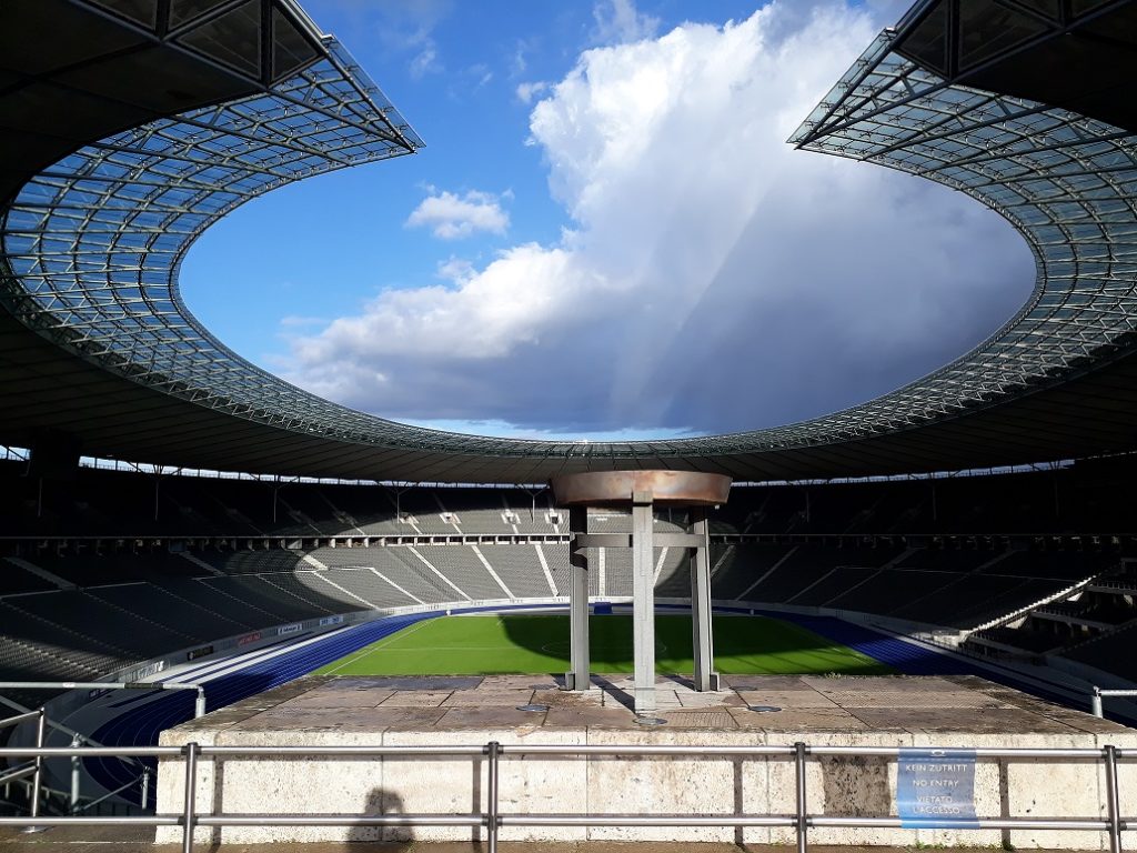 Olympiastadion Berlin, erbaut zur Olympiade 1936. Fußball ist neben Kultur und Religion eine der letzten großen Erzählungen, die unserer Gesellschaft noch verbindet, narrativer Kitt sozusagen. Fußball ist auch Ersatzreligion, Anhänger beider Kulturen sind mitunter fanatisch, fasziniert von Ritualen, Gesängen, Inszenierungen, die Gemeinde trifft sich zu festlegten Zeiten, in der Kirche, im Stadion, in der Kneipe, der Verstand setzt aus (so überhaupt vorhanden), Idole werden angebetet, idealisiert, Kreuzzüge gegen den jeweiligen Gegner imaginiert, oft auch in Hooligan Gewalt umgesetzt. Gruselig fand ich die Reaktion des örtlichen Plebs, als ein bekannter Torwart von Hannover 96 sich wegen Depressionen umbrachte. Tausende trauerten echt, trafen sich vor dem Stadion, trugen sich in Kondolenzbücher ein, ich glaube, es gab sogar eine Trauerfeier im Stadion. Es war so wie bei Hindenburgs Beerdigung. Die Leute waren traurig, obwohl sie den Torwart überhaupt nicht kannten, höchstens irgendwelches Medienblabla über ihn.