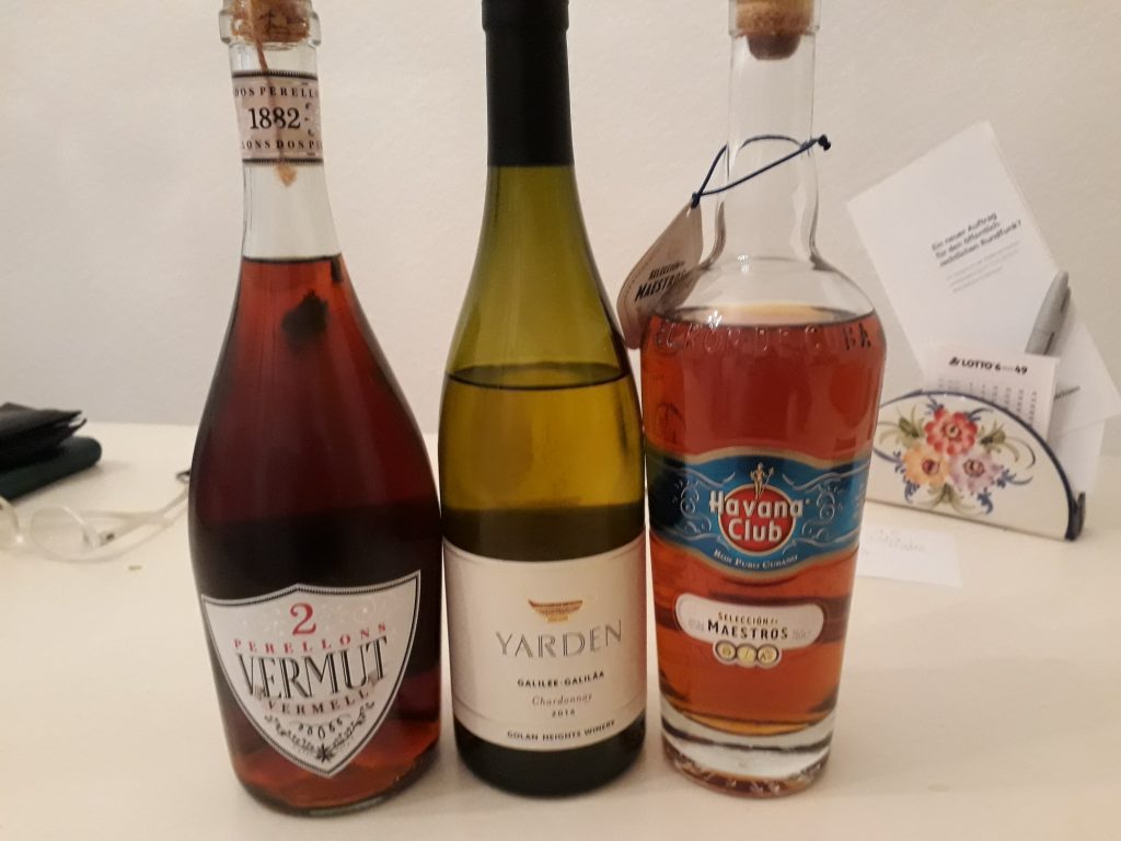 Hoch die internationale Solidarität! Wermut aus einer mallorquinischen Cooperativa, Wein aus Israel und Rum aus Cuba. Mein weihnachtlicher Gabentisch, die drei schönsten Geschenke, die ich mir selber machen werde. Ich freu mich jetzt schon auf die Überraschung. Die nächsten Lektionen in Sachen „Genuss – aber mit links“ sind: „Bombenstimmung beim Saufen für den Frieden“ und „Unverpackt aus der Region: Ökologisches Kiffen“.