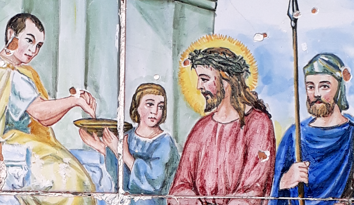 Sehr schwul, wenn man den Ausschnitt einer Kreuzwegstation betrachtet. Und bedenkt, dass der Mann jahrelang mit einer reinen Männergang durch die Lande gezogen ist. Andererseits hat er wohl mit Maria Magdalena rumgevögelt, also tendenziell eher bi. Ihr hat er als erster die Geschichte erzählt, dass er von den Toten wiederauferstanden sei, eine ziemlich durchgeknallte Geschichte, die aber ihre starke Position innerhalb der Sekte begründet haben dürfte. Im Laufe der Zeit haben sich dann die Macker im Machtkampf durchgesetzt und Maria Magdalena das Etikett einer Prostituierten angehängt, typische männliche Vernichtungsstrategie gegen selbstbewusste und sexuell autonome Frauen. Im Mittelalter wäre sie verbrannt worden, insofern hat sie noch mal Glück gehabt, und musste nur noch post mortem als Wichsvorlage für mittelalterliche Potentaten herhalten, hier in einer eher moppeligen Version mit drallen Möpsen von Tizian.