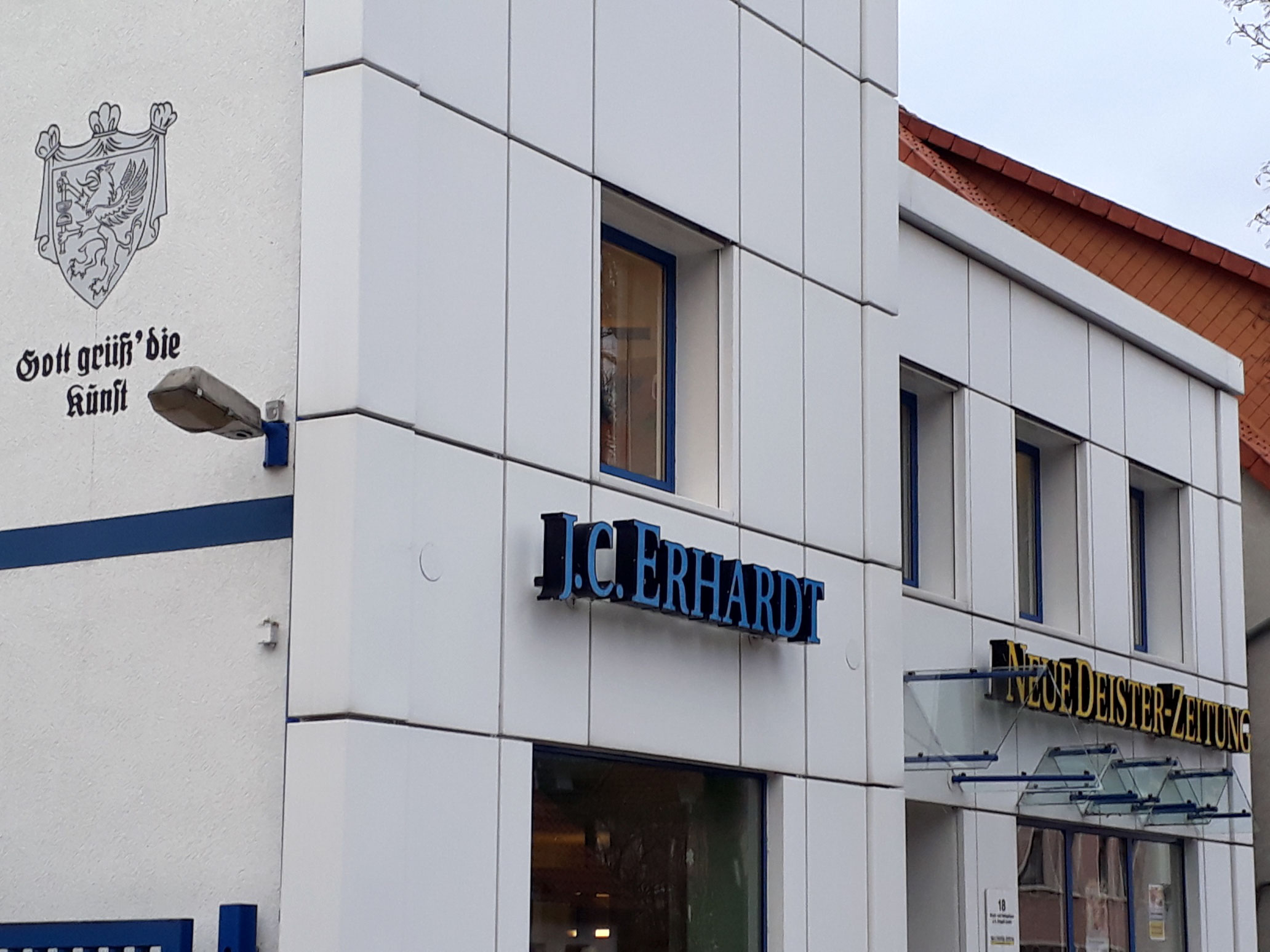„Gott grüß die Kunst“ ist ein alter Gruß der Buchdrucker, der Mitglieder der „schwarzen Kunst“. Gesehen am Redaktionsgebäude der Neuen Deister-Zeitung, wo die Zeitung früher auch gedruckt wurde. Die Drucker und ihre Gewerkschaften waren früher die linke und intellektuelle Speerspitze der Arbeiterbewegung, weil sie als erste und intensiv mit Druckerzeugnissen in Berührung kamen.